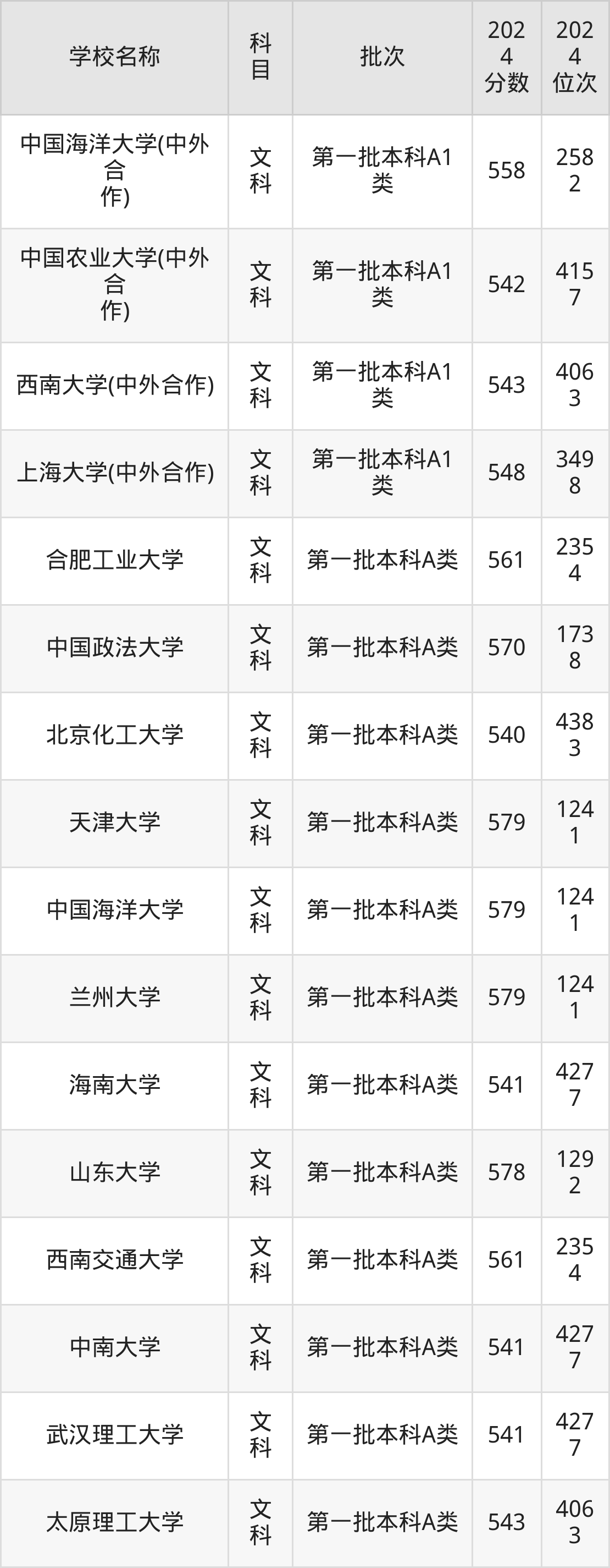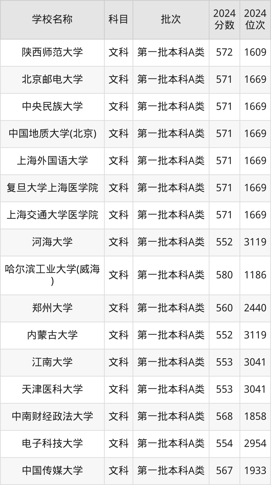 山西高考文科共有79所211大学在540到580分之间录取,包含上海大学、哈尔滨工业大学(威海)、天津大学、中国海洋大学、兰州大学、山东大学、西北工业大学、北京外国语大学、东北师范大学、西南财经大学。