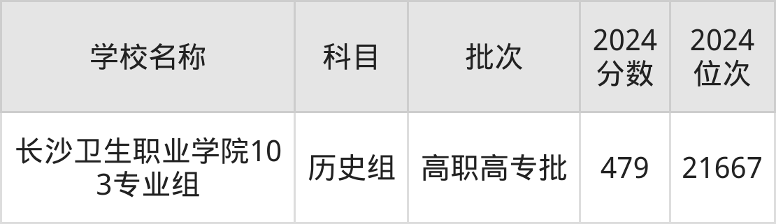 广西高考历史组共有1所公办专科学校在470到480分之间录取,包含长沙卫生职业学院。