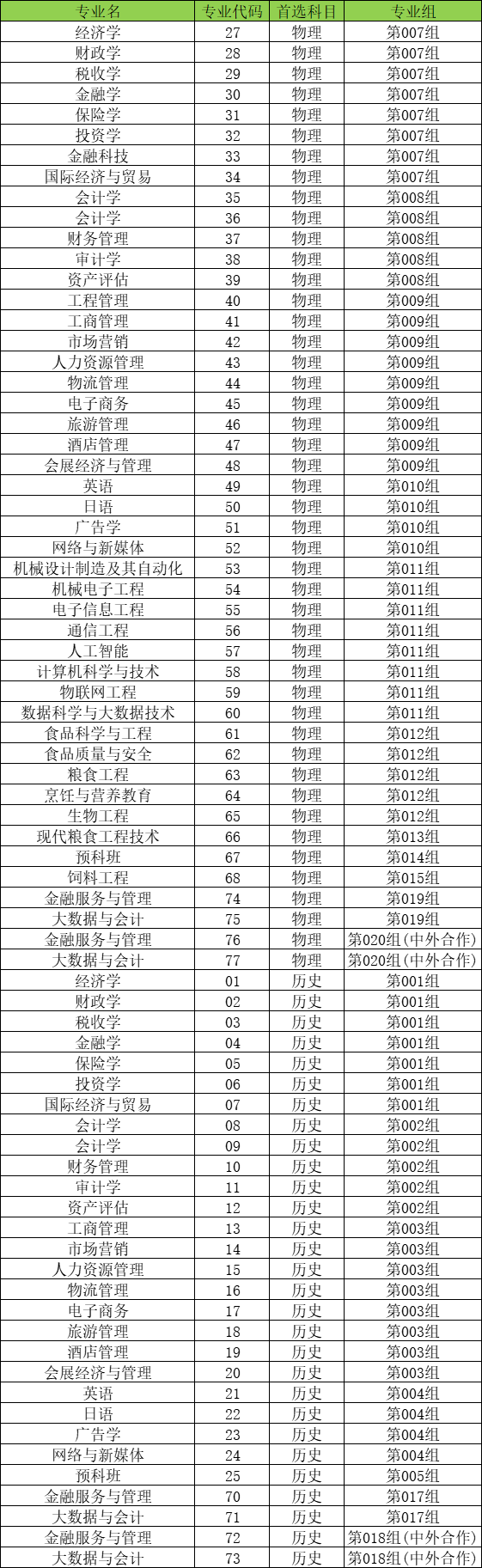 因为同一专业在不同的院校、不同的专业组都有不一样的代码,本文就只以吉林工商学院为例,整理出吉林工商学院专业代码一览表。