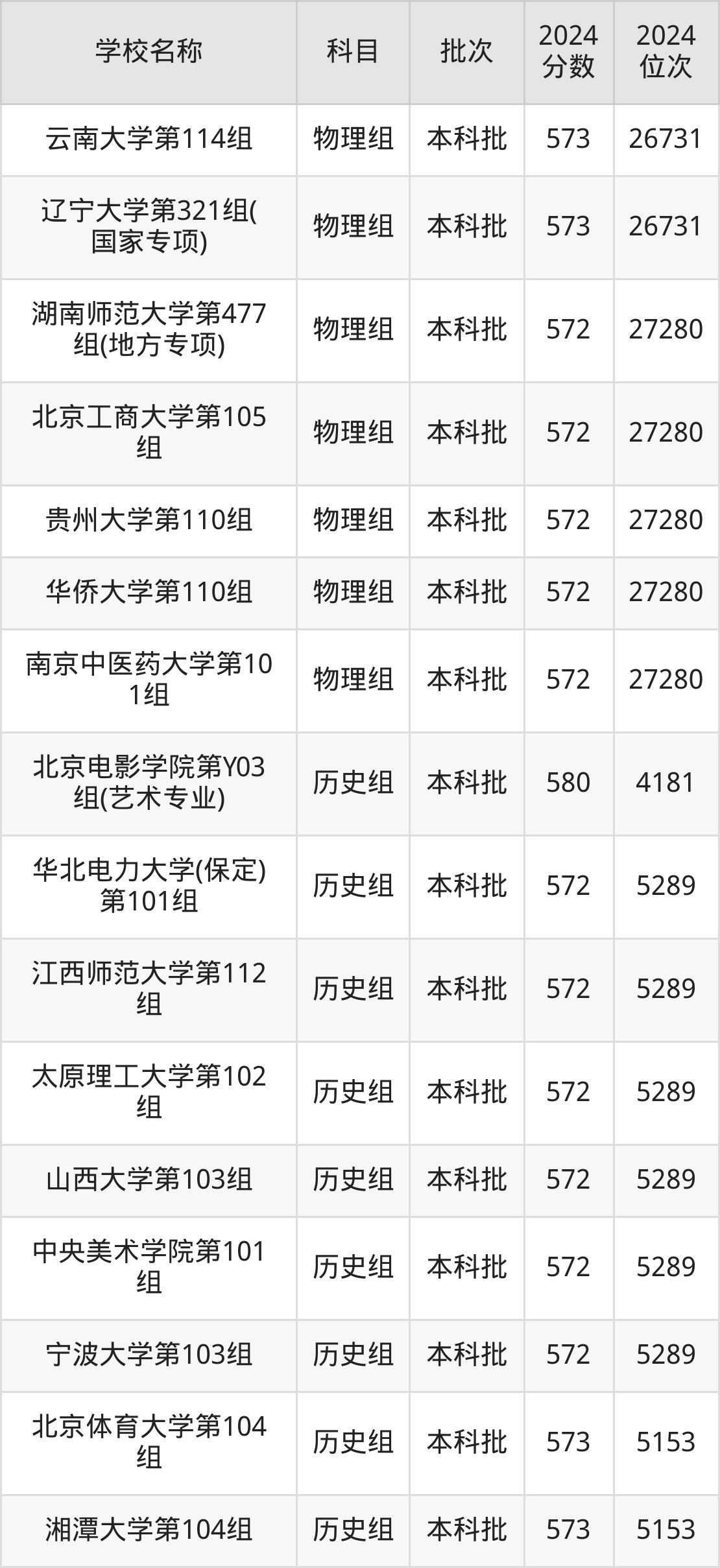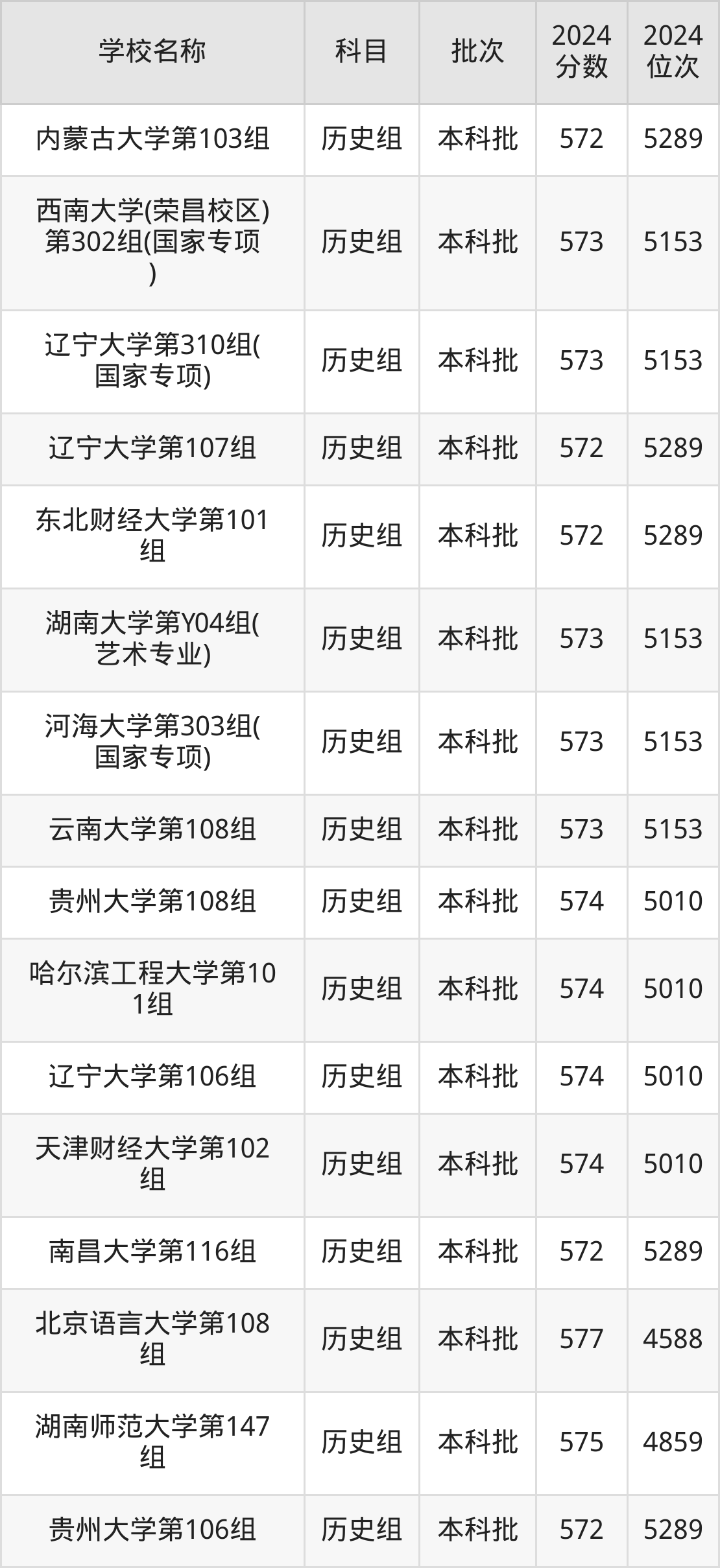 贵州高考历史组共有19所重点大学在570到580分之间录取,包含苏州大学(国家专项计划)、华北电力大学(保定)(预科班)、中国石油大学(华东)、对外经济贸易大学(国家专项计划)、西南大学(荣昌校区)(国家专项计划)、湖南师范大学、东北师范大学(预科班)、山西大学、华中农业大学、合肥工业大学(预科班)。