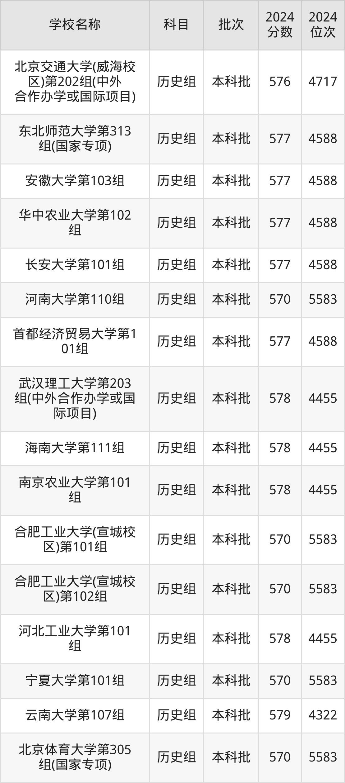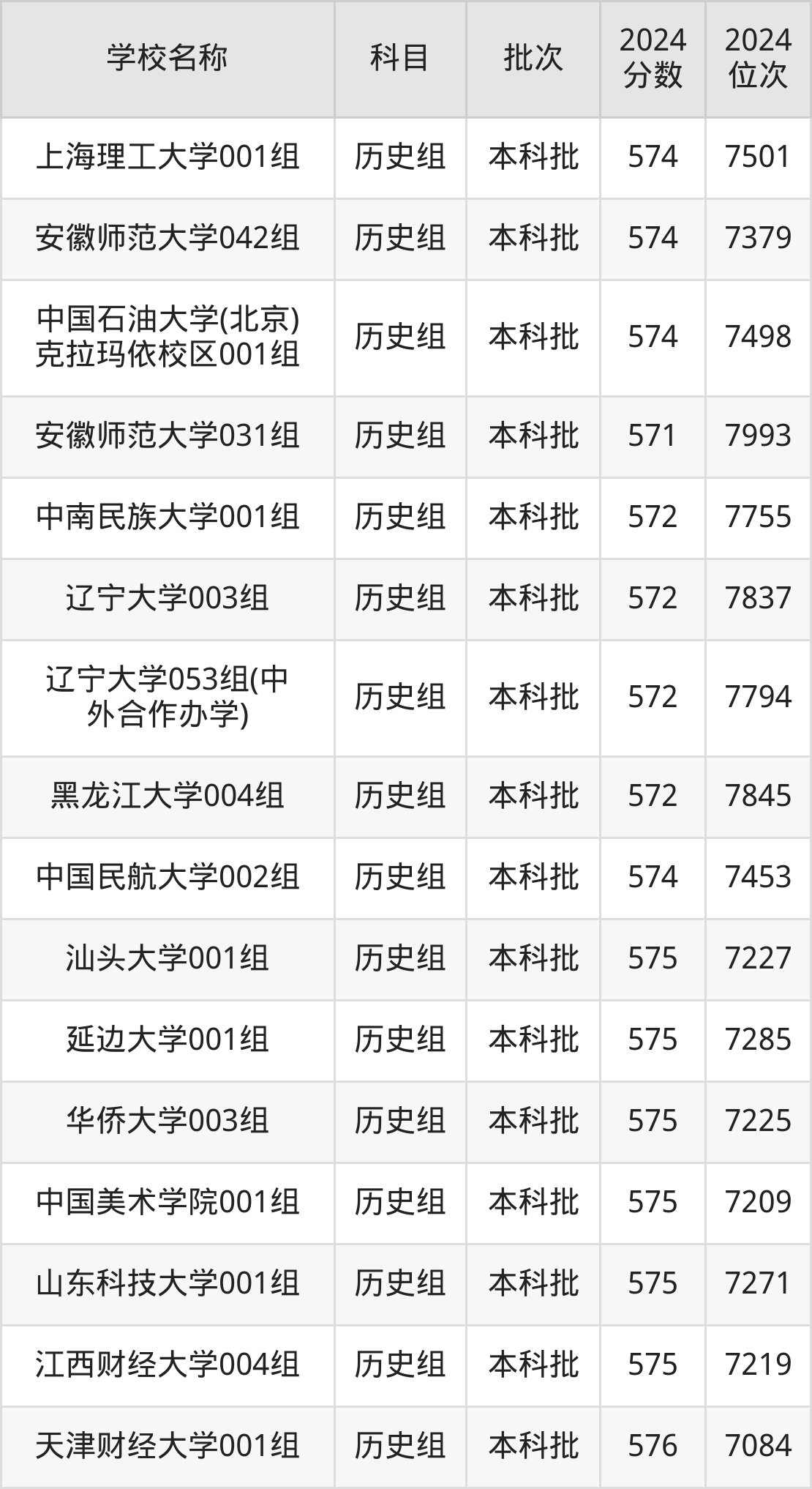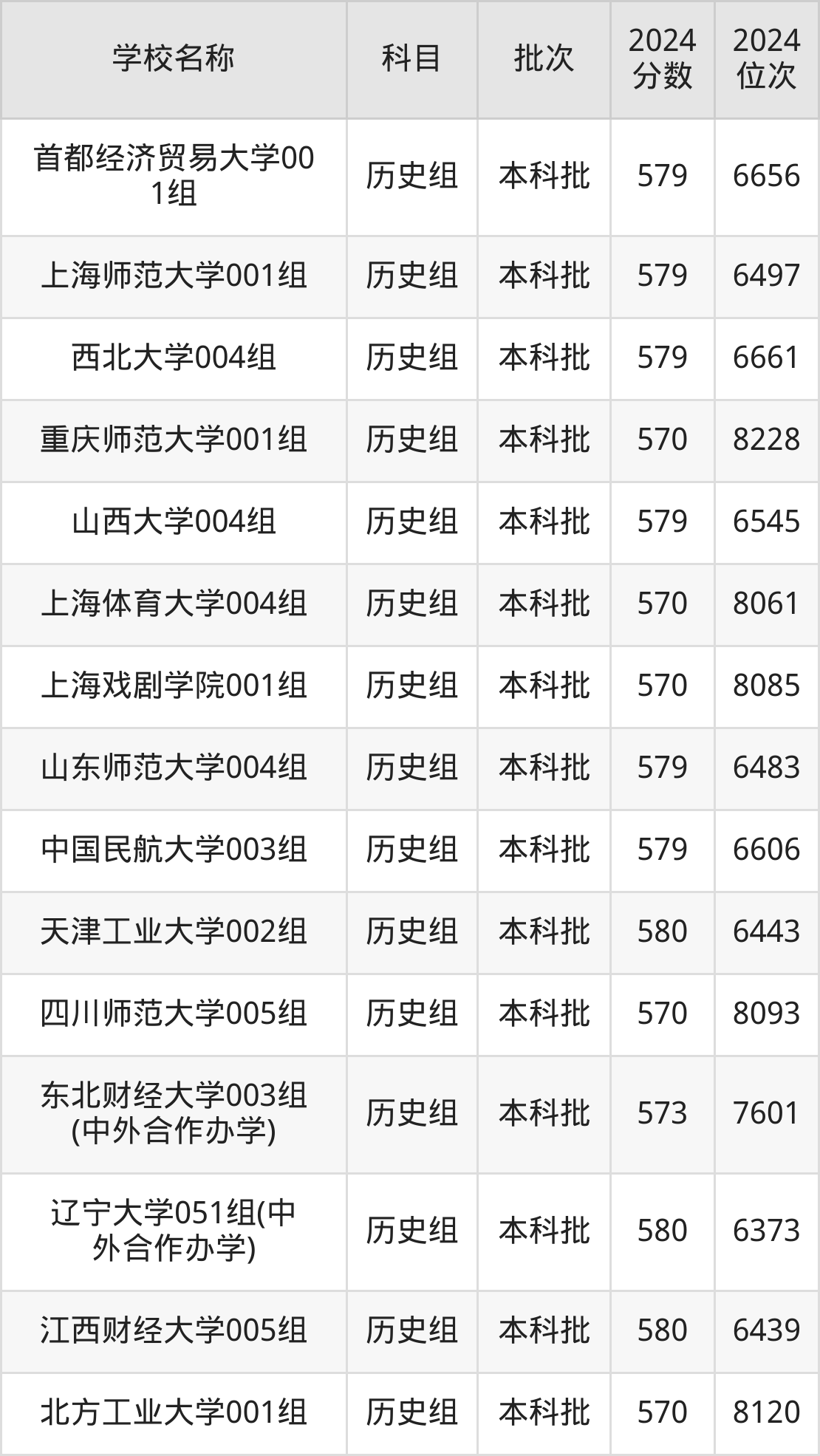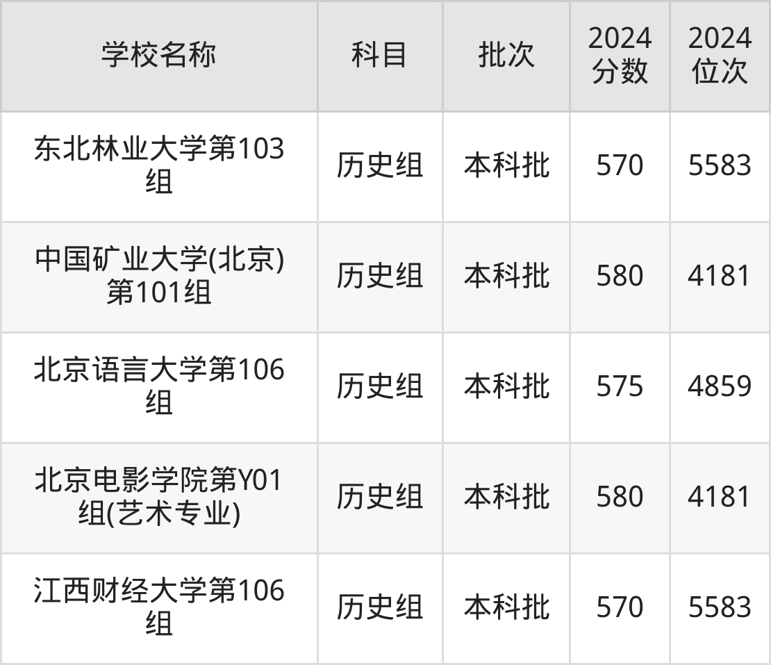 安徽高考历史组共有55所重点大学在570到580分之间录取,包含江西财经大学、辽宁大学、西南石油大学、天津工业大学、中国民航大学、山东师范大学、山西大学、西北大学、上海师范大学、首都经济贸易大学。