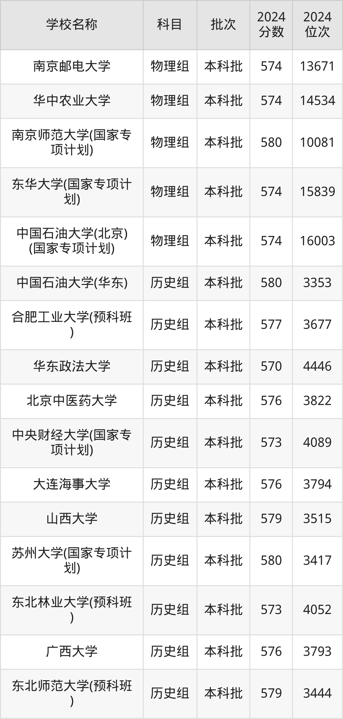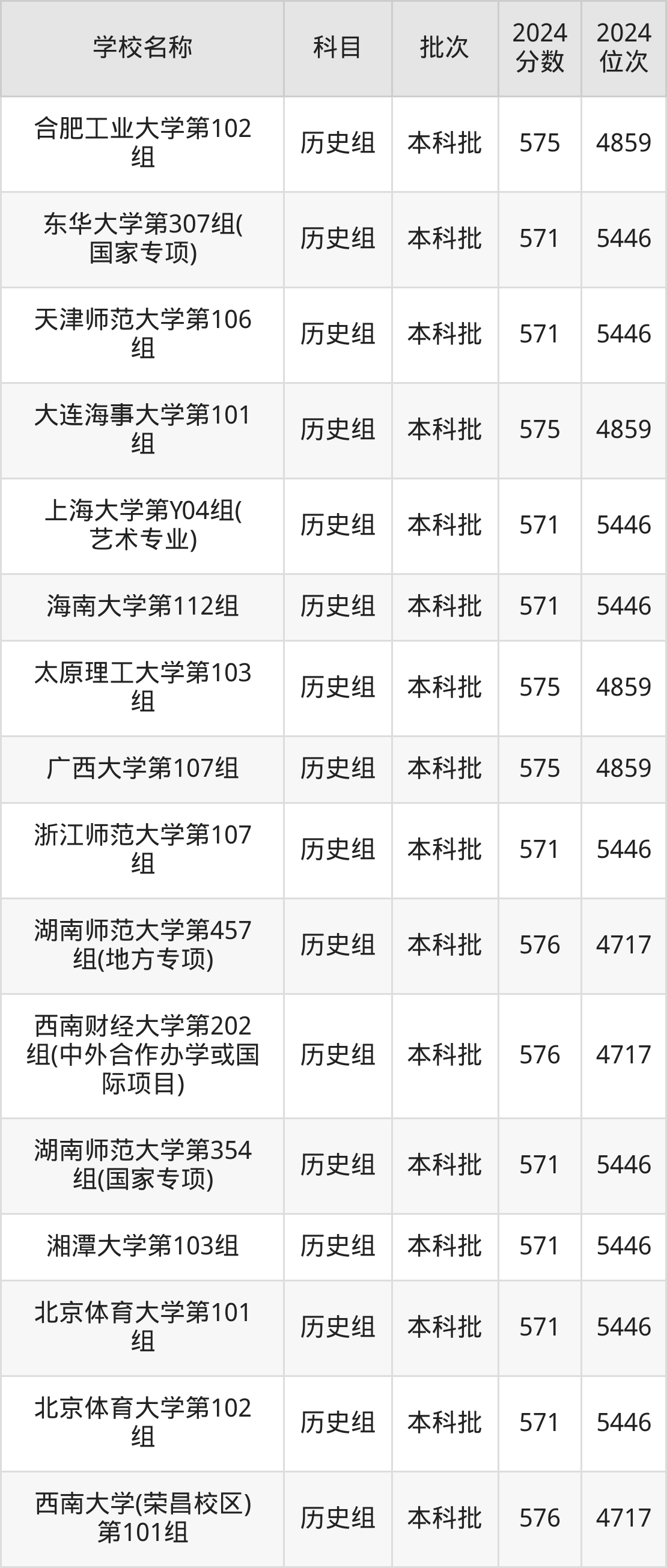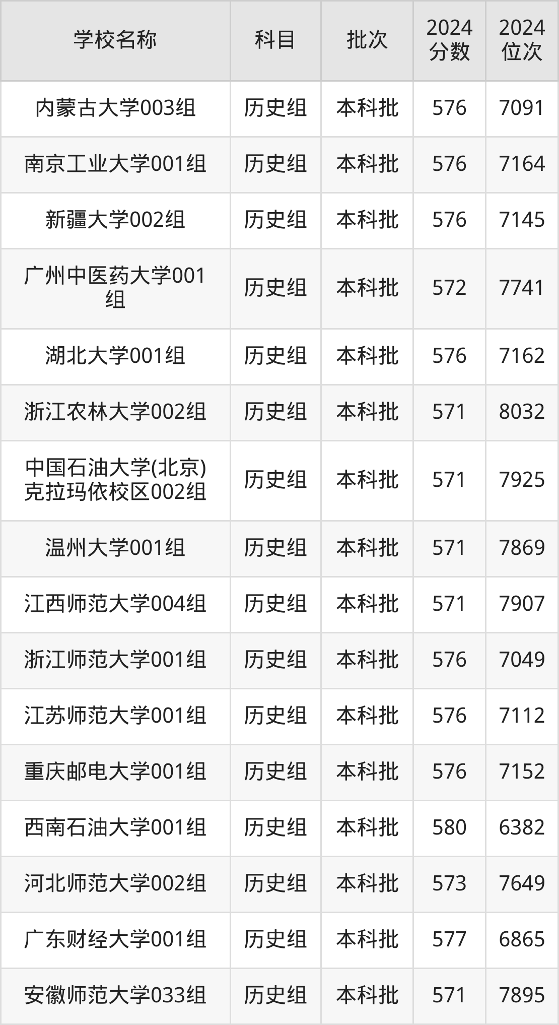 安徽高考历史组共有55所重点大学在570到580分之间录取,包含江西财经大学、辽宁大学、西南石油大学、天津工业大学、中国民航大学、山东师范大学、山西大学、西北大学、上海师范大学、首都经济贸易大学。