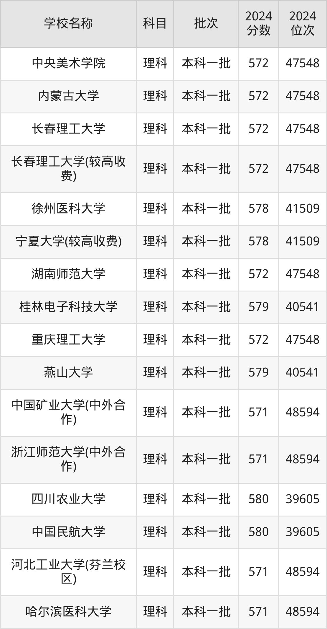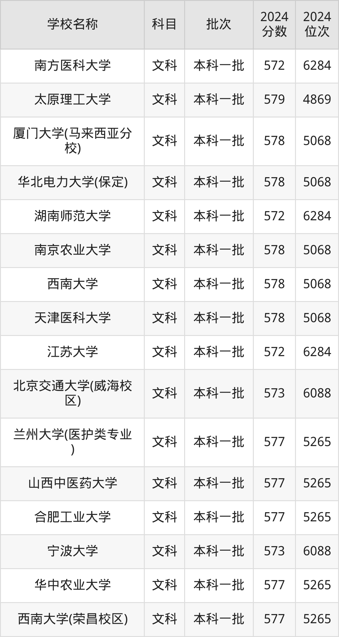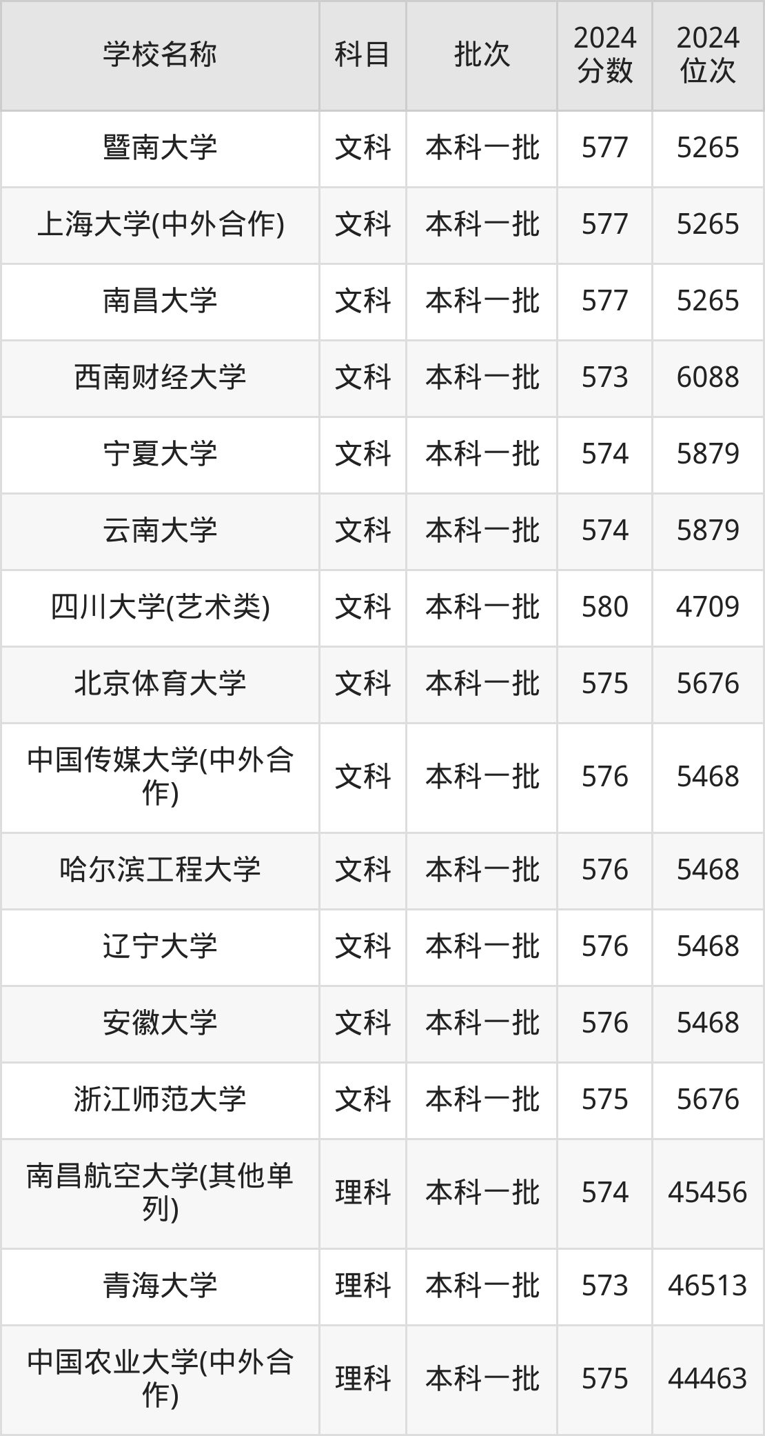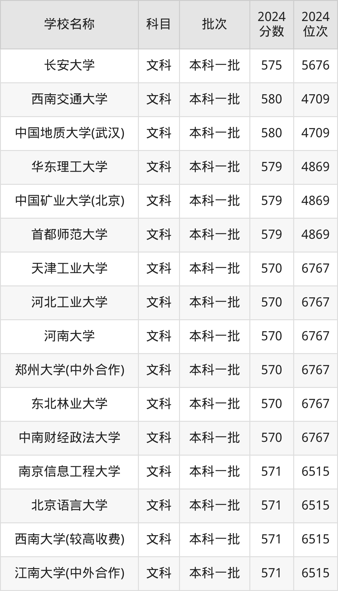 河南高考文科共有45所重点大学在570到580分之间录取,包含四川大学(艺术类)、西南交通大学、中国地质大学(武汉)、华东理工大学、中国矿业大学(北京)、首都师范大学、太原理工大学、厦门大学(马来西亚分校)、华北电力大学(保定)、南京农业大学。