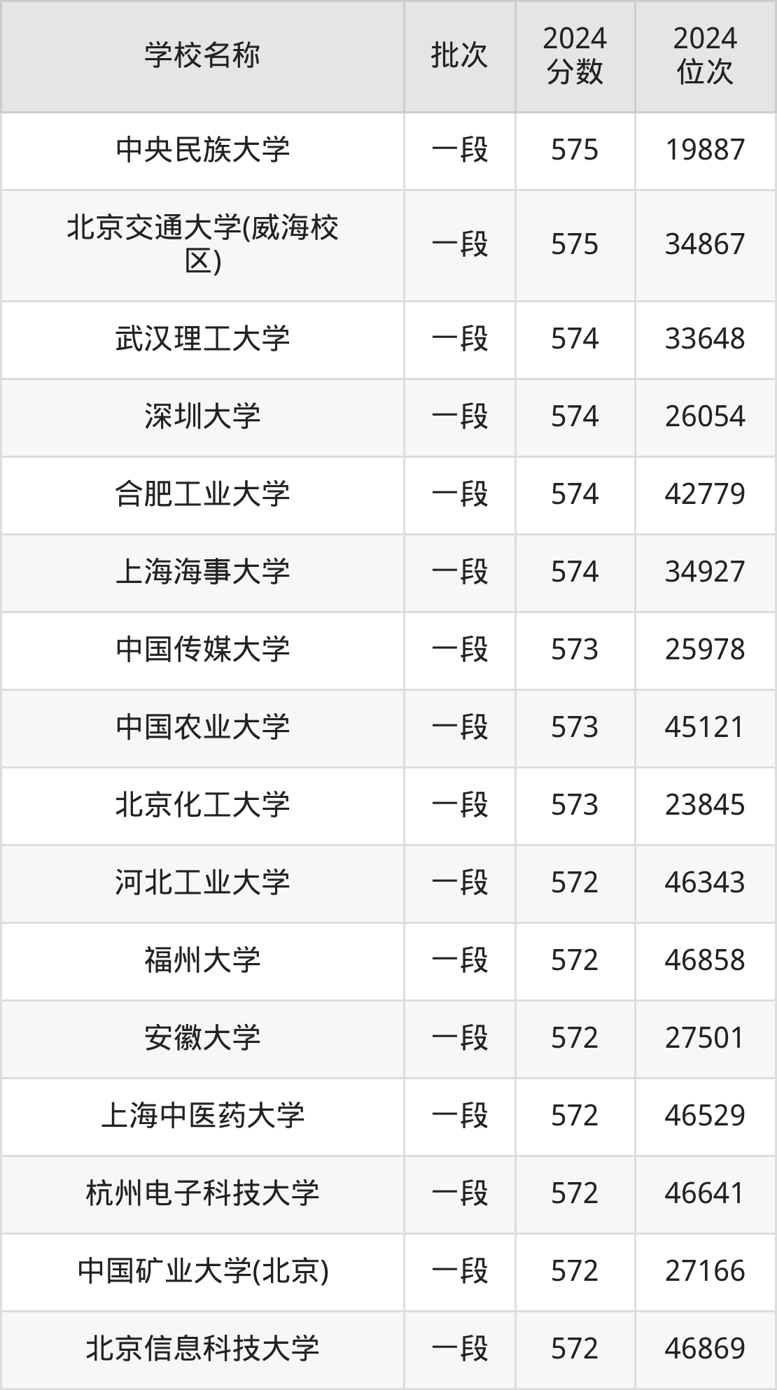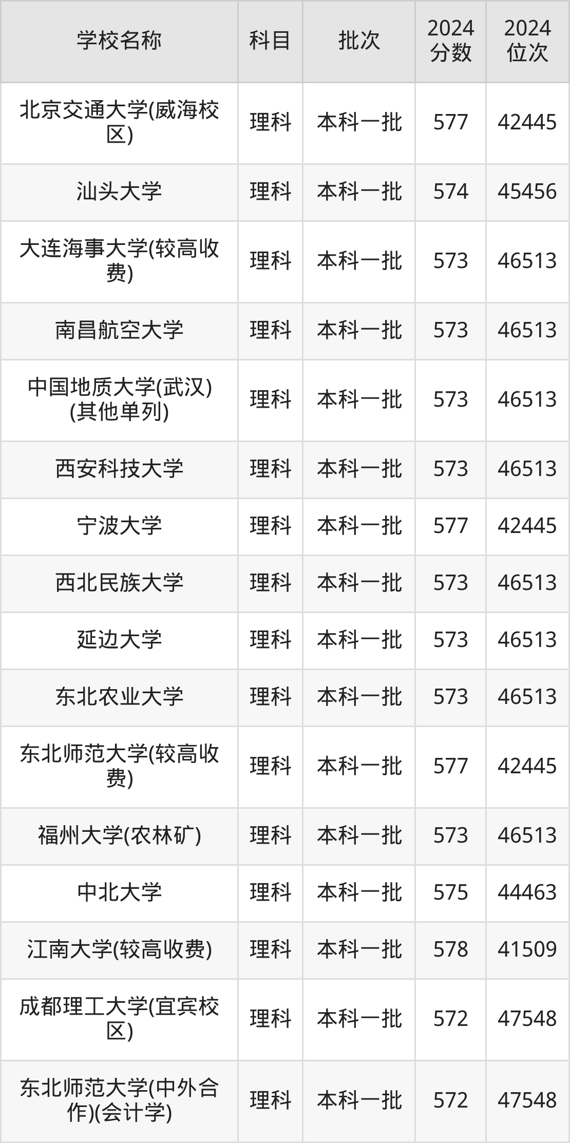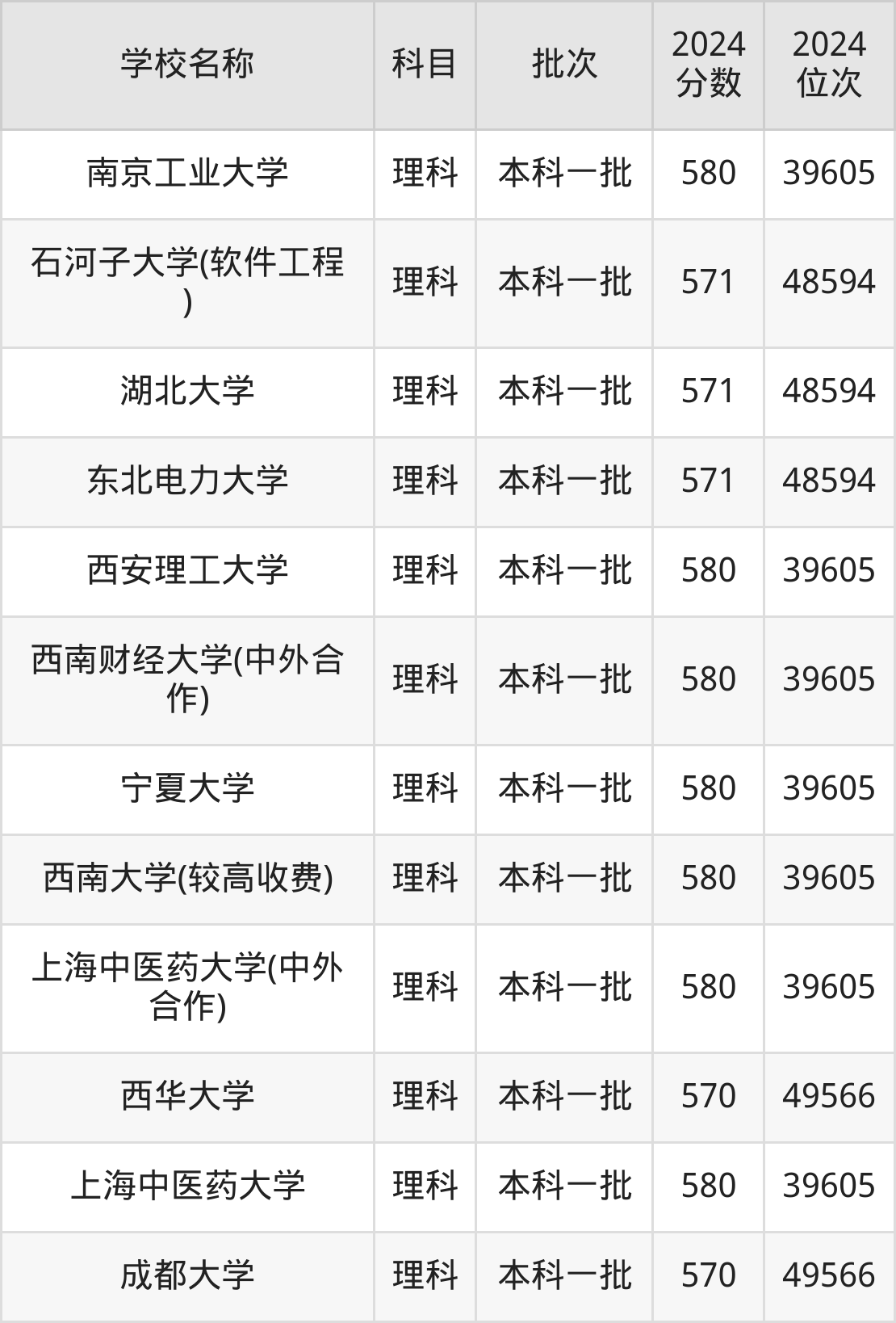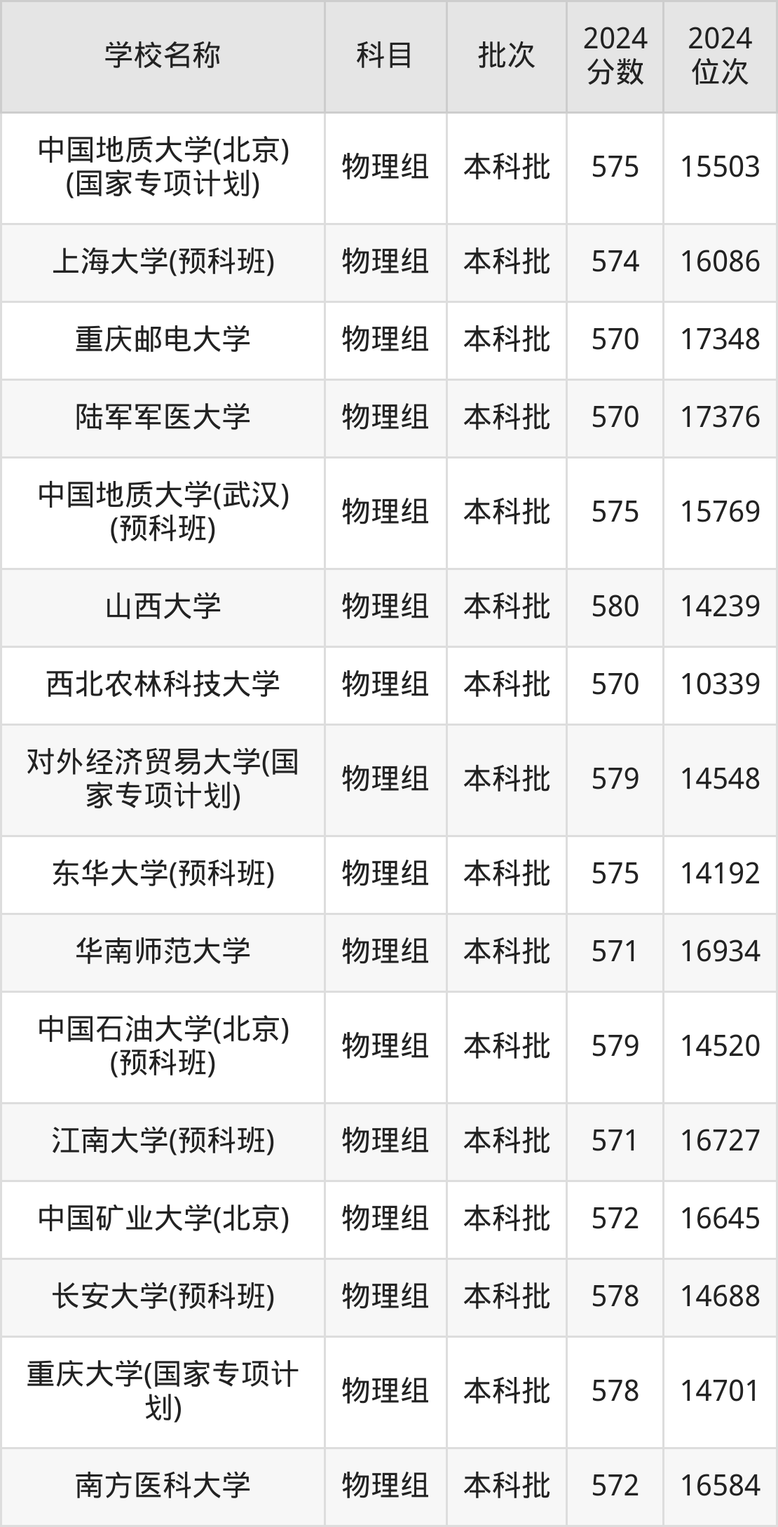 一、570到580分的重点大学最低分一览表