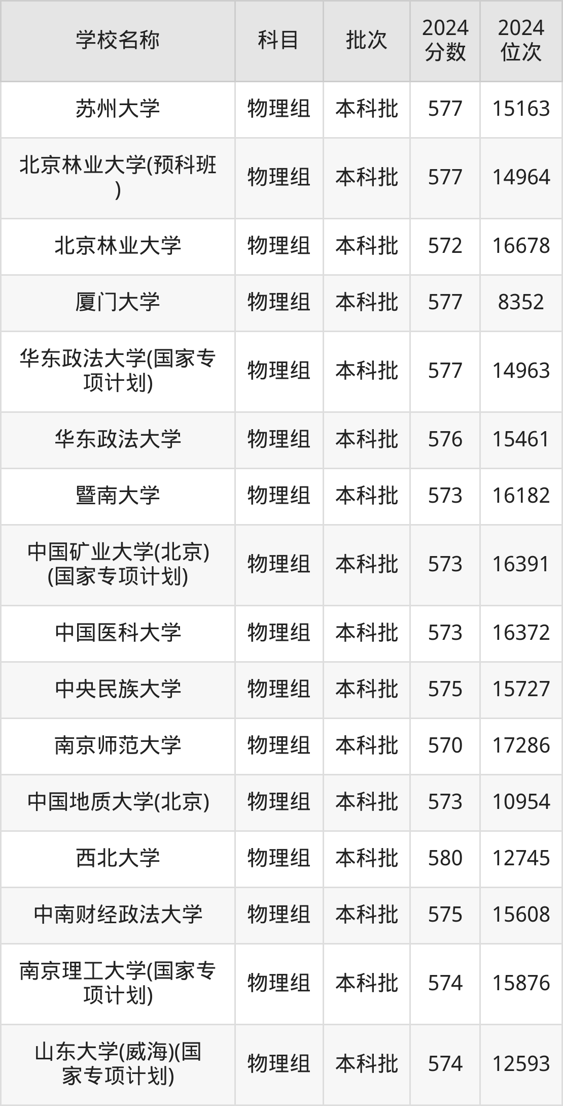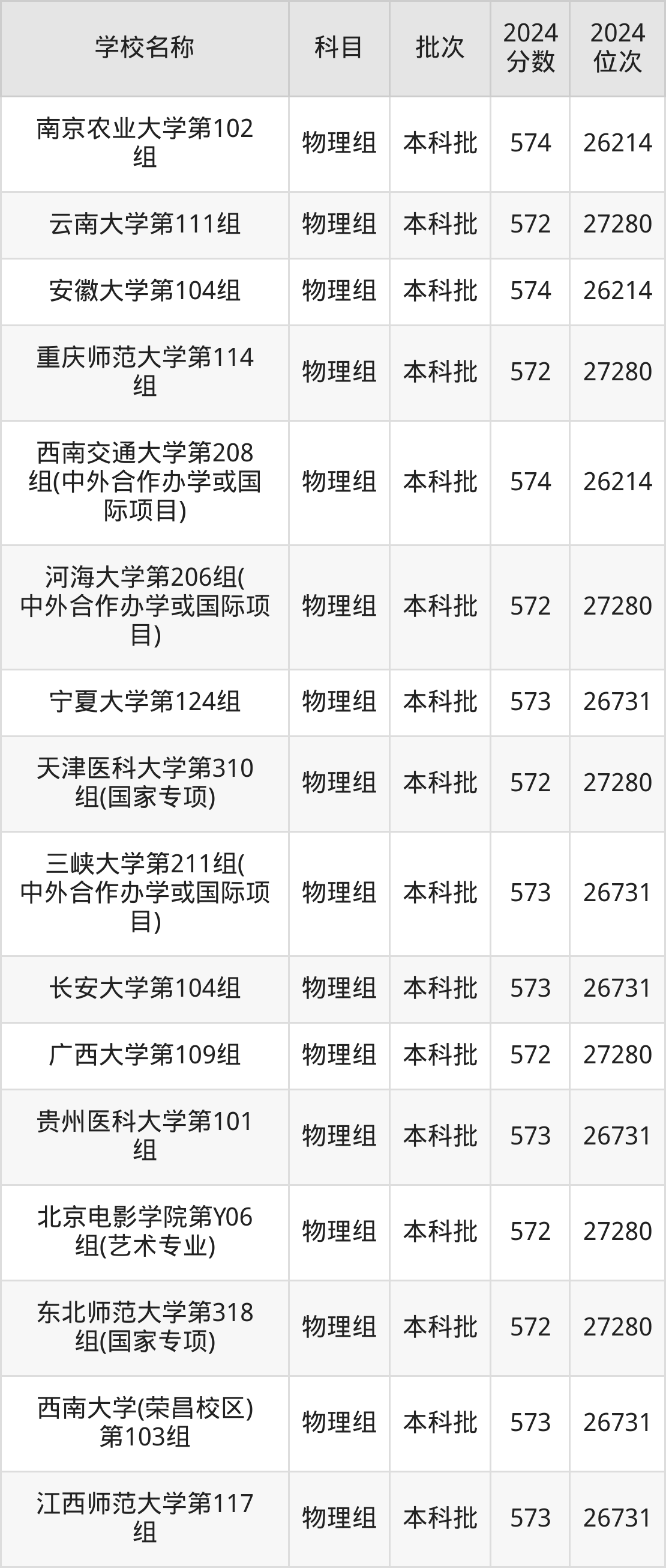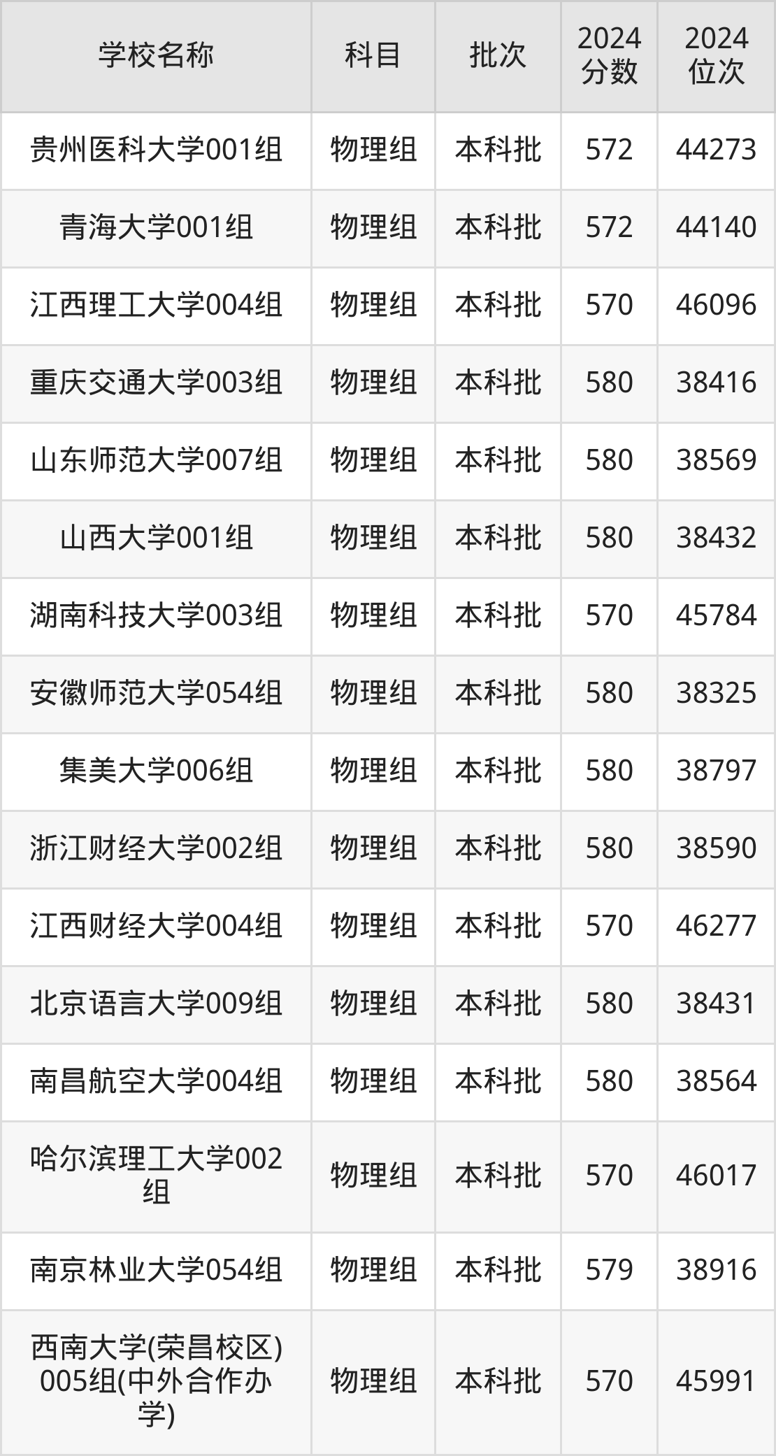 贵州高考物理组共有37所重点大学在570到580分之间录取,包含南京师范大学(国家专项计划)、西北大学、山西大学、对外经济贸易大学(国家专项计划)、中国石油大学(北京)(预科班)、长安大学(预科班)、重庆大学(国家专项计划)、苏州大学、北京林业大学(预科班)、厦门大学。