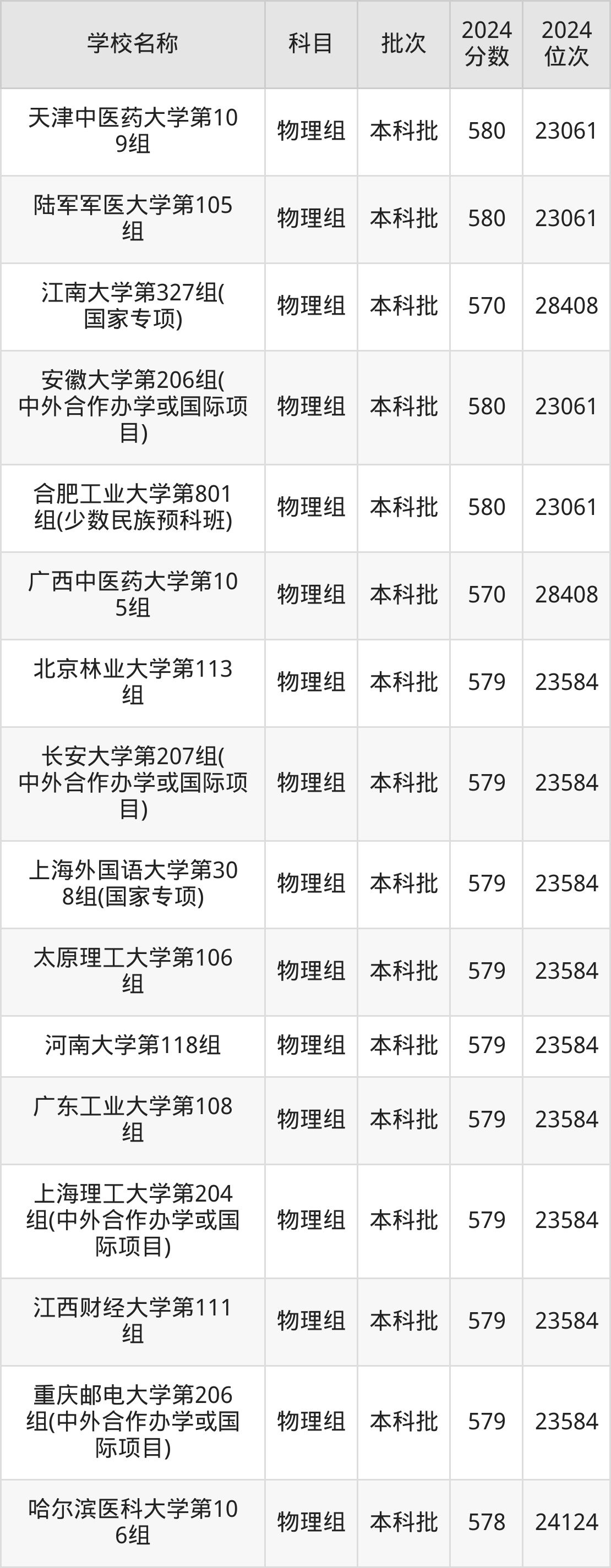 安徽高考物理组共有83所重点大学在570到580分之间录取,包含成都信息工程大学、广东工业大学、重庆交通大学、山东师范大学、山西大学、安徽师范大学、集美大学、浙江财经大学、北京语言大学、南昌航空大学。