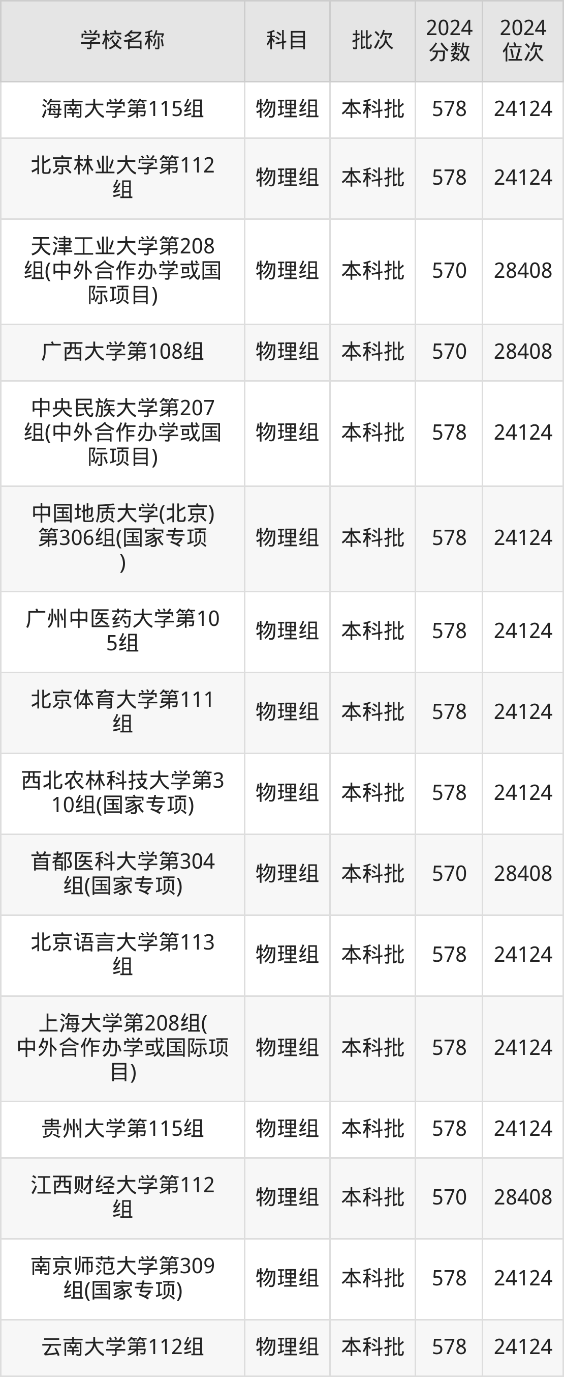 湖南高考物理组共有82所重点大学在570到580分之间录取,包含华北电力大学(保定)、北京化工大学、成都理工大学、广东外语外贸大学、中国石油大学(北京)、北京体育大学、宁波大学、广东工业大学、贵州大学、上海理工大学。