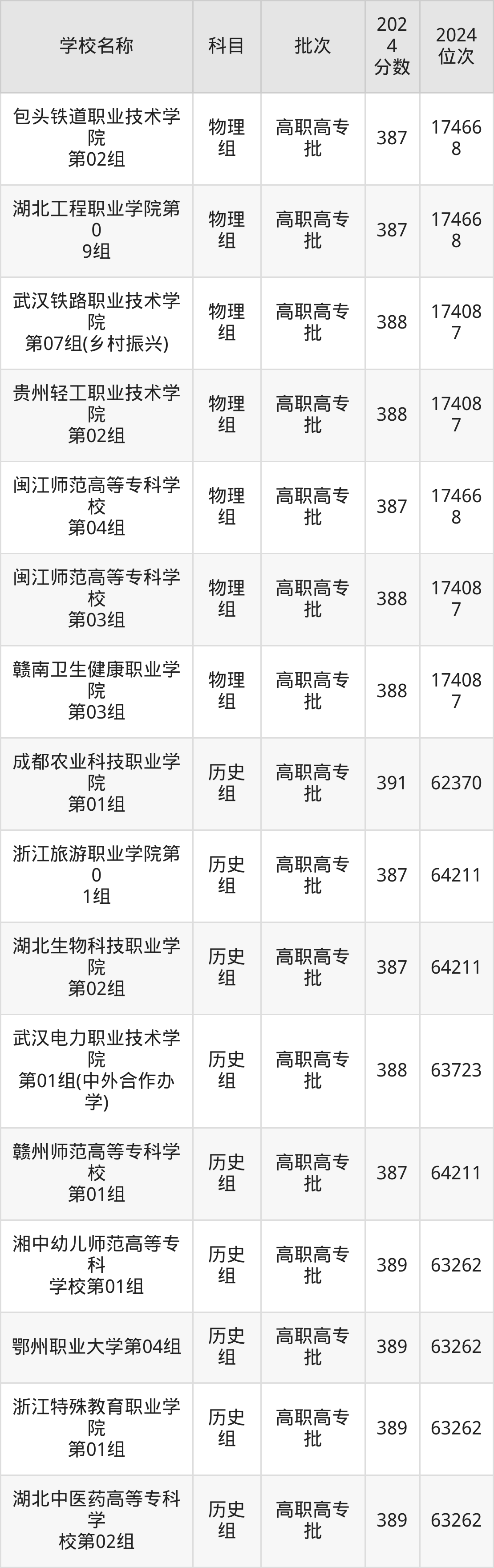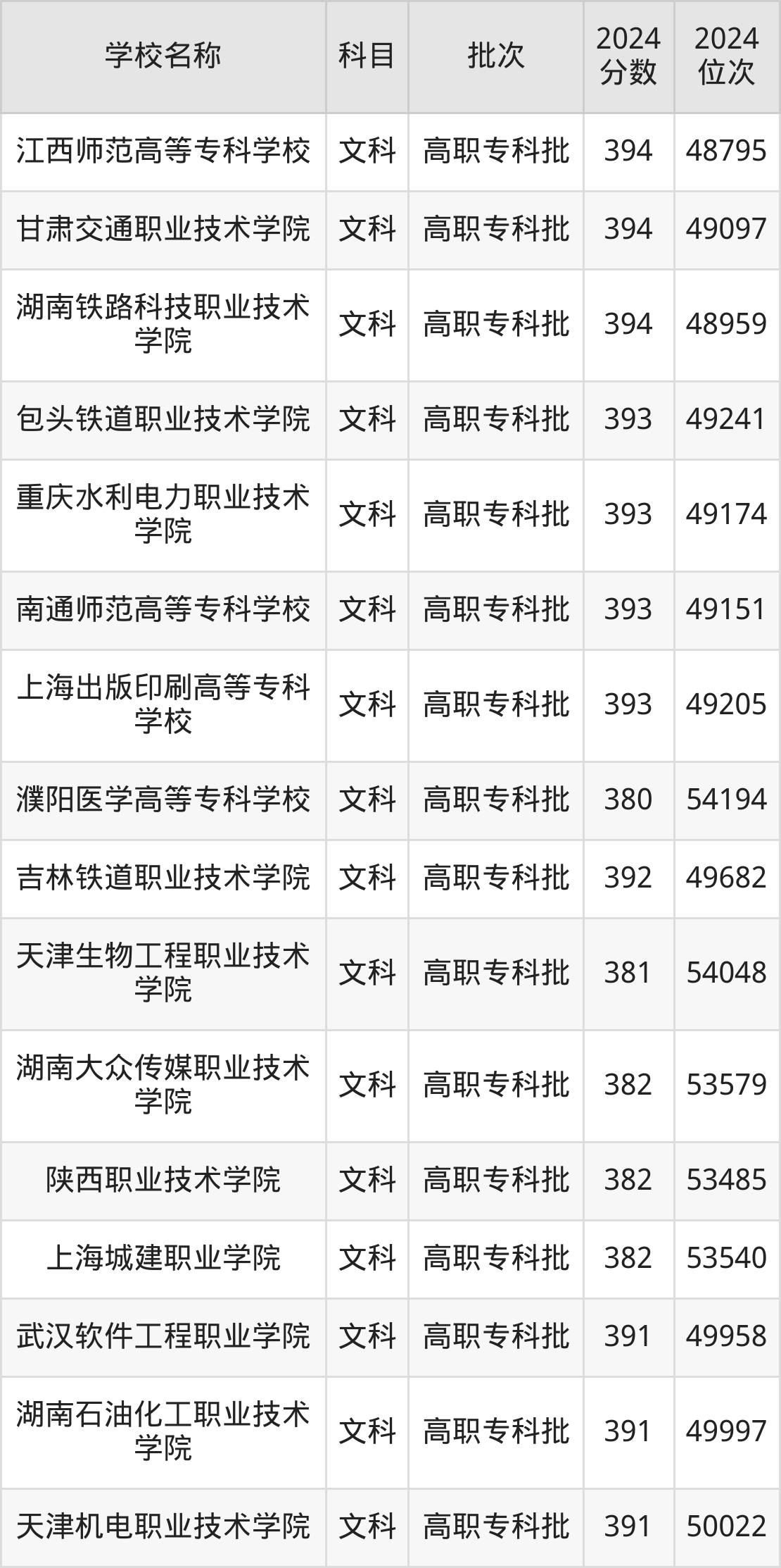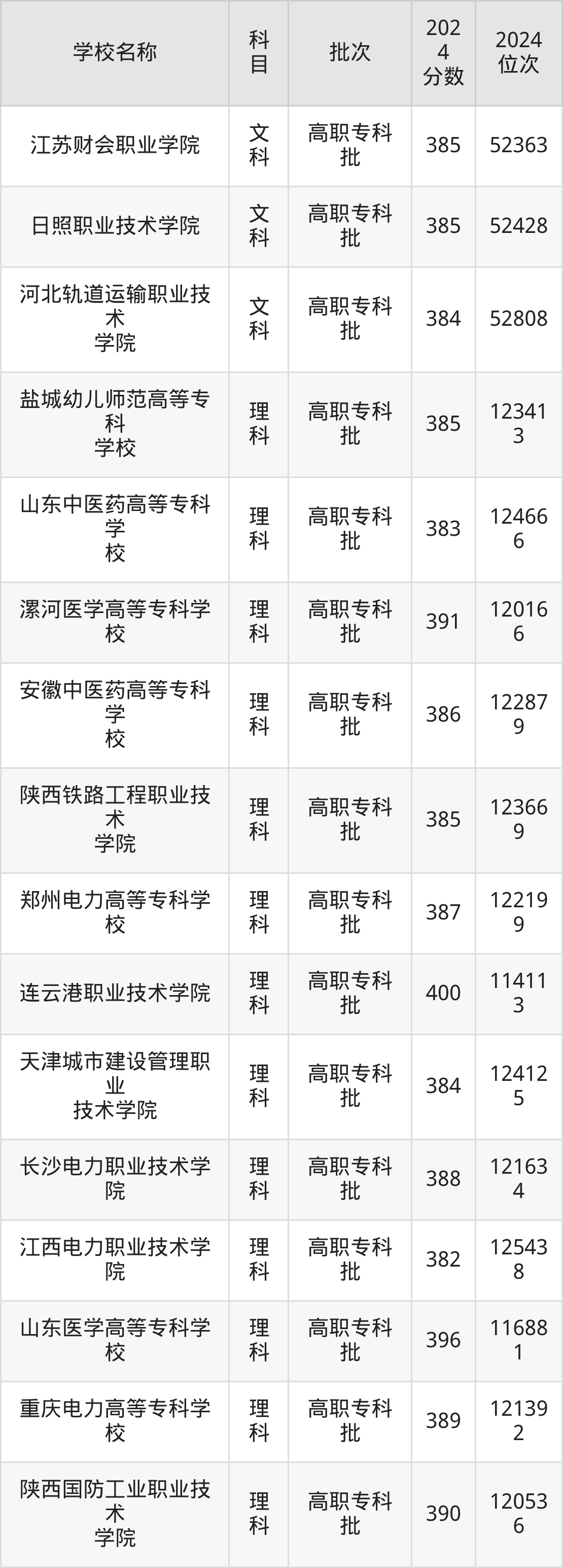 全国各省380到400分能够上的公办专科学校是不同的。小编以国内部分高考省份为例,为大家带来380到400分的公办专科学校最低录取分数线汇总,供2025届想报考公办专科学校的考生同学们查看。