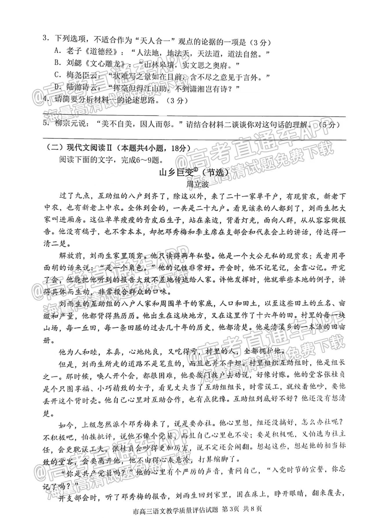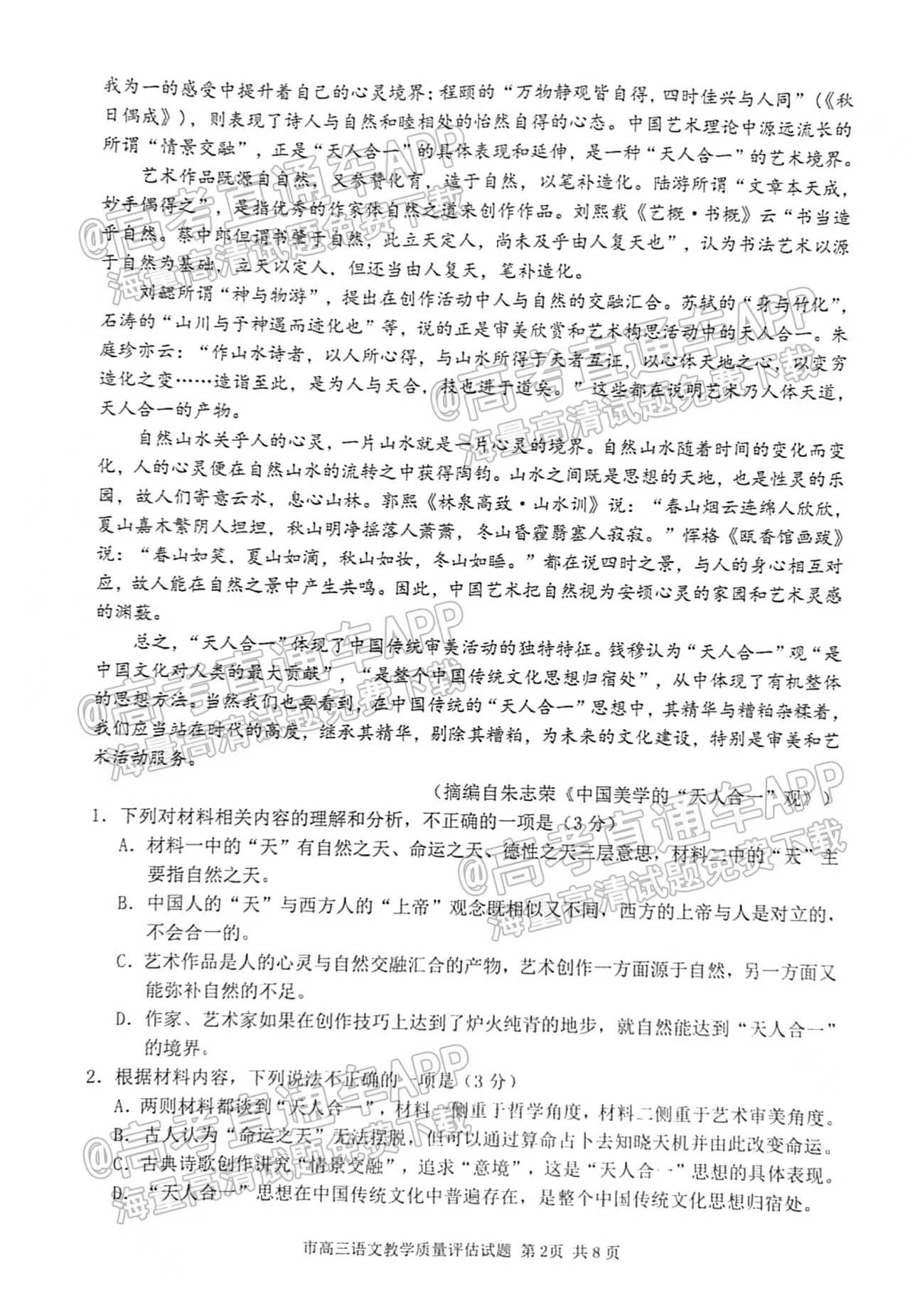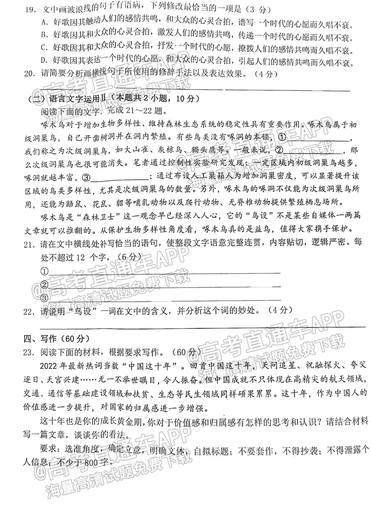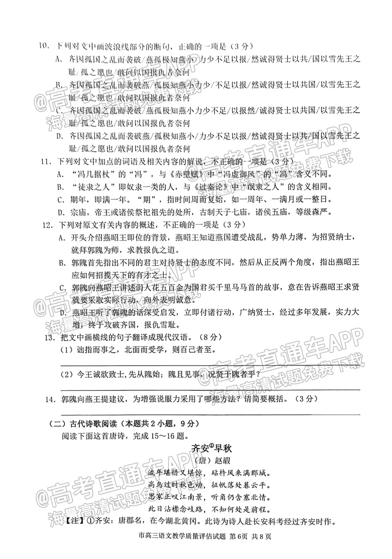 2023浙江台州一模将于11月16日开考,本次的考试科目一共有九门,分别是语文,数学、英语、物理、化学、生物、政治、历史、地理。以下是语文的试卷及答案解析,详情如下: