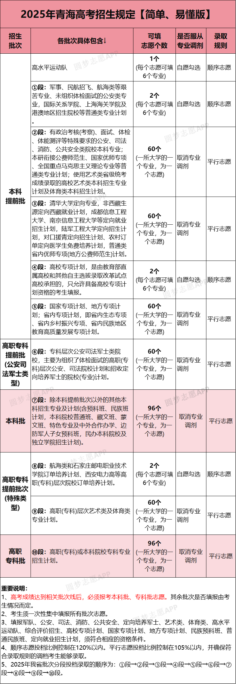 最多填报96个“专业+学校”志愿,没有专业调剂选项,包括本科普通专业、民族预科班、普通民族班计划等。