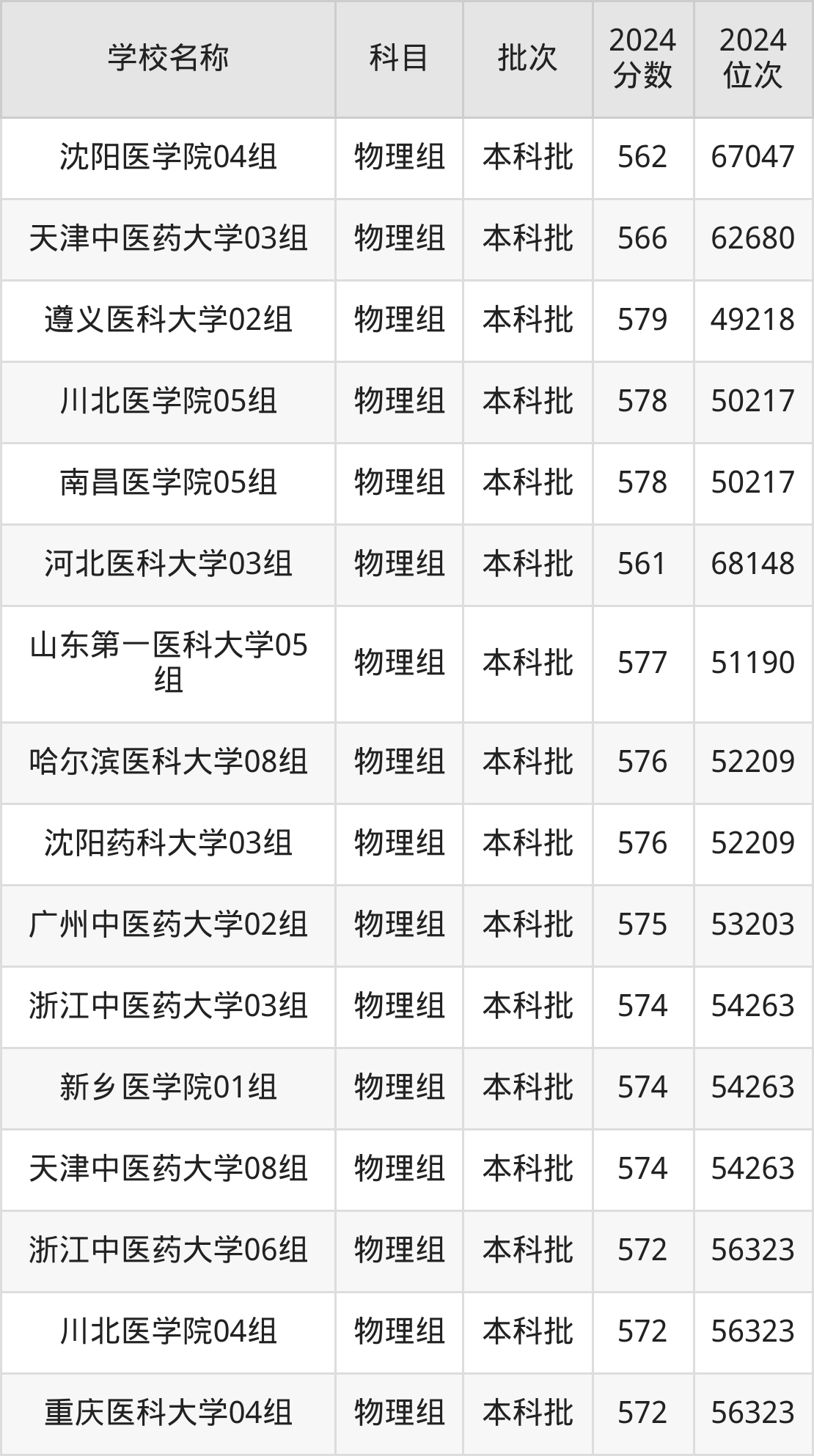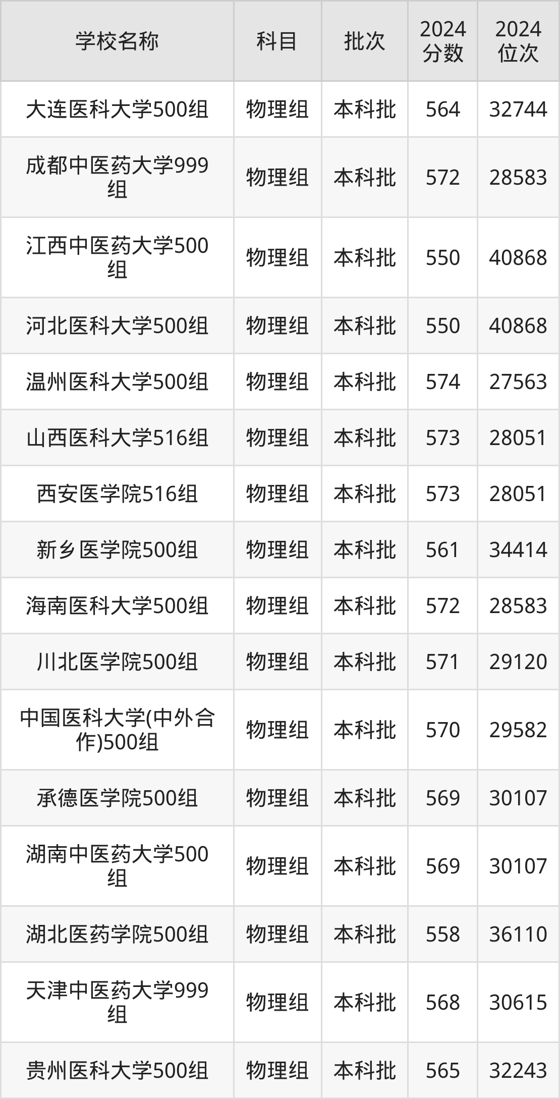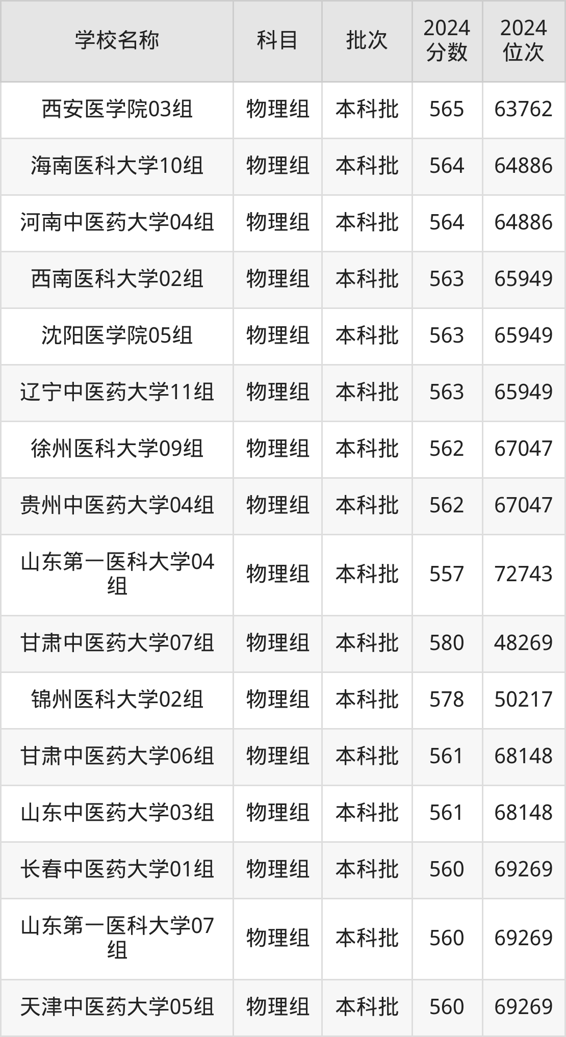 内蒙古高考理科共有5所医科大学在550到580分之间录取,包含北京协和医学院、中国药科大学、北京中医药大学、南方医科大学、成都中医药大学。