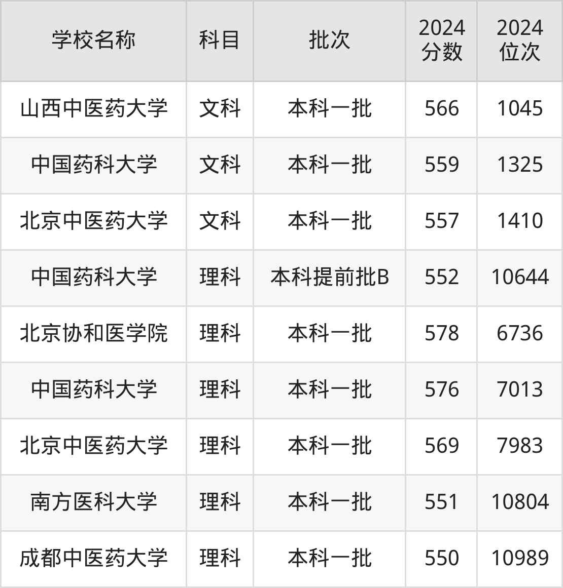 内蒙古高考文科共有3所医科大学在550到580分之间录取,包含山西中医药大学、中国药科大学、北京中医药大学。