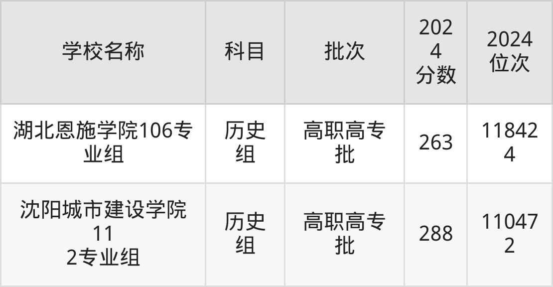 广西高考历史组共有6所二本民办大学在260到300分之间录取,包含沈阳城市建设学院、上海中侨职业技术大学、泰山科技学院、西安信息职业大学、湖北恩施学院、浙江广厦建设职业技术大学。