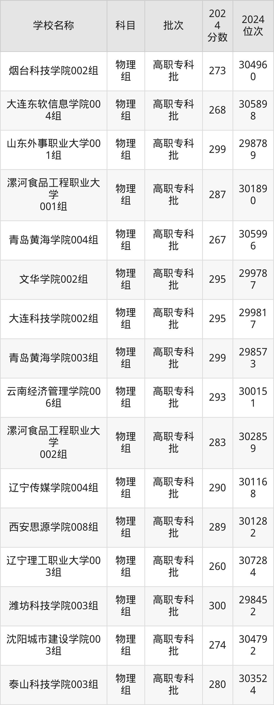 黑龙江高考物理组共有14所二本民办大学在260到300分之间录取,包含辽宁传媒学院、南昌理工学院、西安信息职业大学、云南经济管理学院、山东英才学院、保定理工学院、西安工商学院、河北科技学院、江西应用科技学院、山东工程职业技术大学。