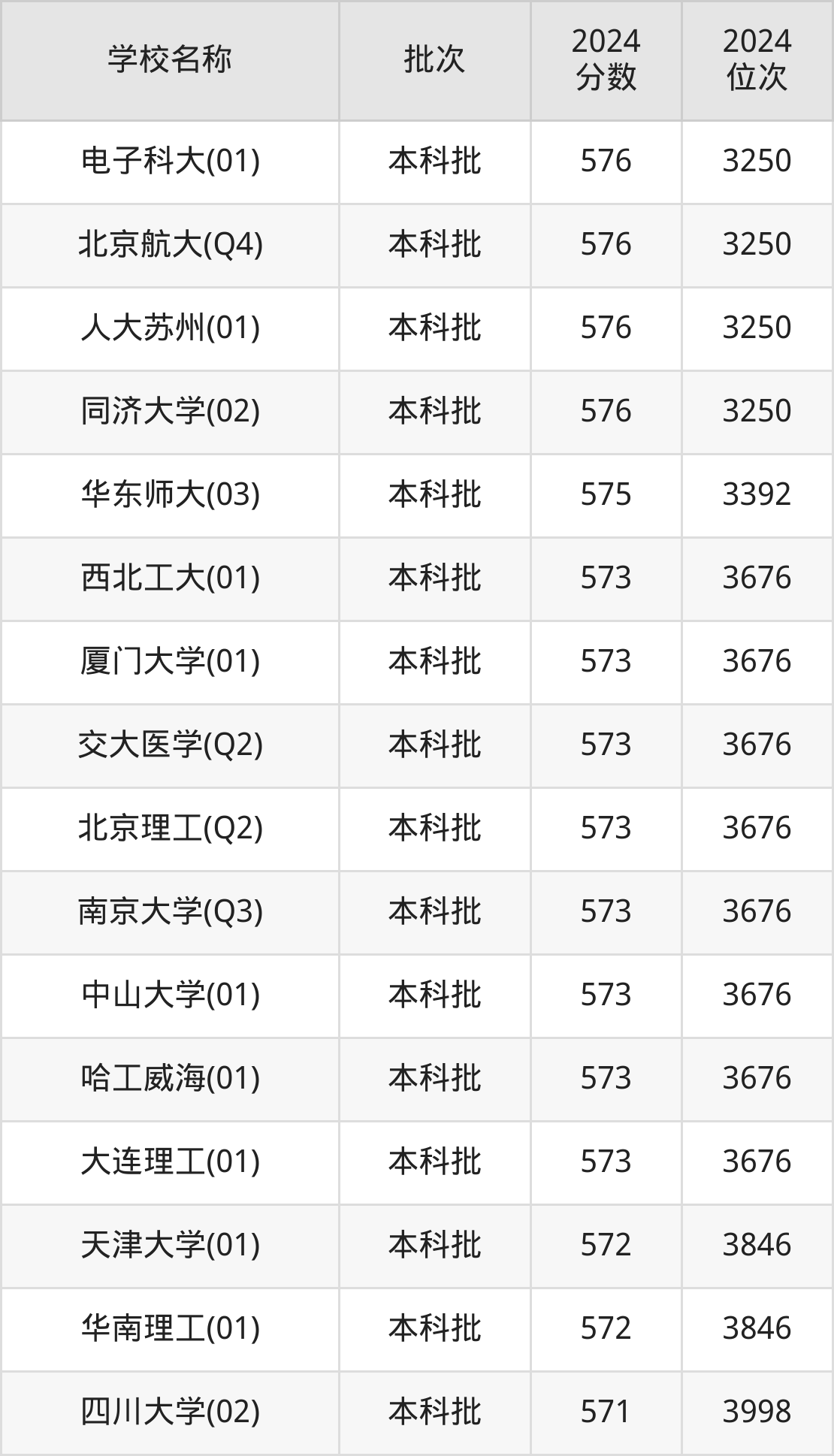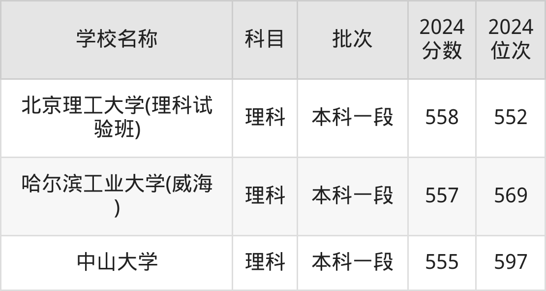 青海高考理科共有12所985大学在550到580分之间录取,包含电子科技大学、东南大学、西北工业大学、大连理工大学、同济大学(医学试验班)、武汉大学、南开大学、天津大学、中国人民大学、北京理工大学(理科试验班)。