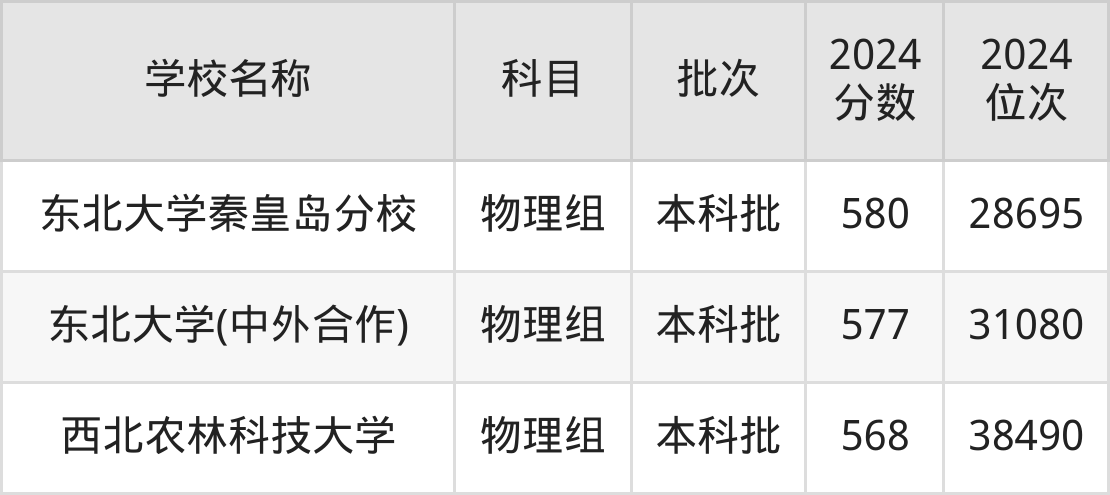 河北高考物理组共有3所985大学在550到580分之间录取,包含东北大学秦皇岛分校、东北大学(中外合作)、西北农林科技大学。