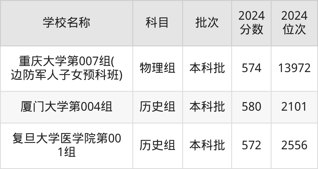 黑龙江高考历史组共有2所985大学在550到580分之间录取,包含厦门大学、复旦大学上海医学院。