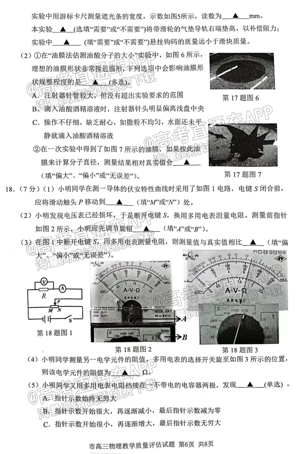 2023届浙江台州一模在2022年11月16日进行,很多同学都非常想知道2023浙江台州一模物理试卷及答案解析,待2023浙江台州一模考完了物理,小编将第一时间为大家带来最新的2023浙江台州一模物理试卷及答案详解,供大家参考。