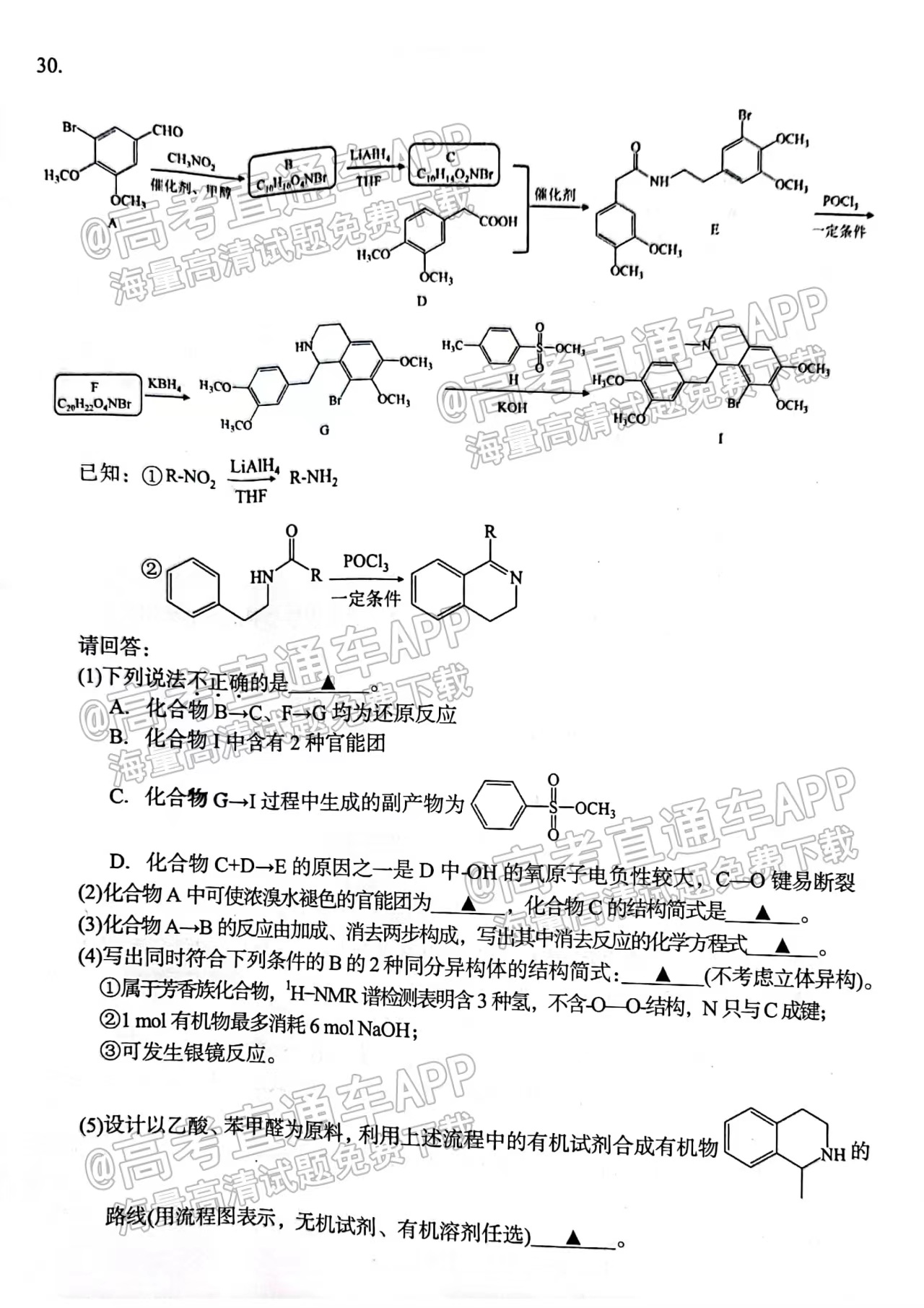 2023届浙江台州一模在2022年11月16日进行,很多同学都非常想知道2023浙江台州一模化学试卷及答案解析,待2023浙江台州一模考完了化学,小编将第一时间为大家带来最新的2023浙江台州一模化学试卷及答案详解,供大家参考。