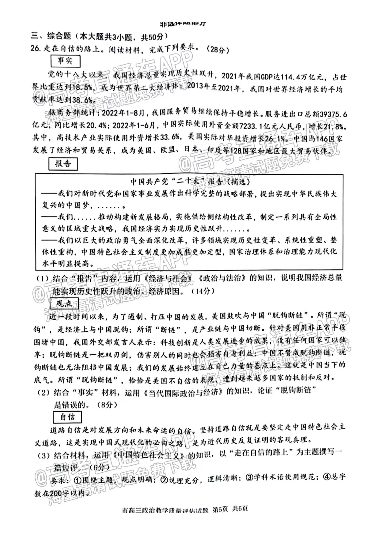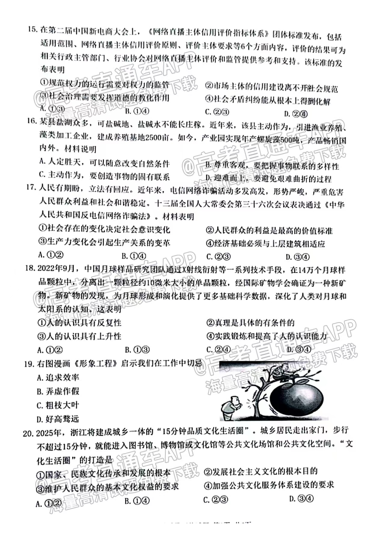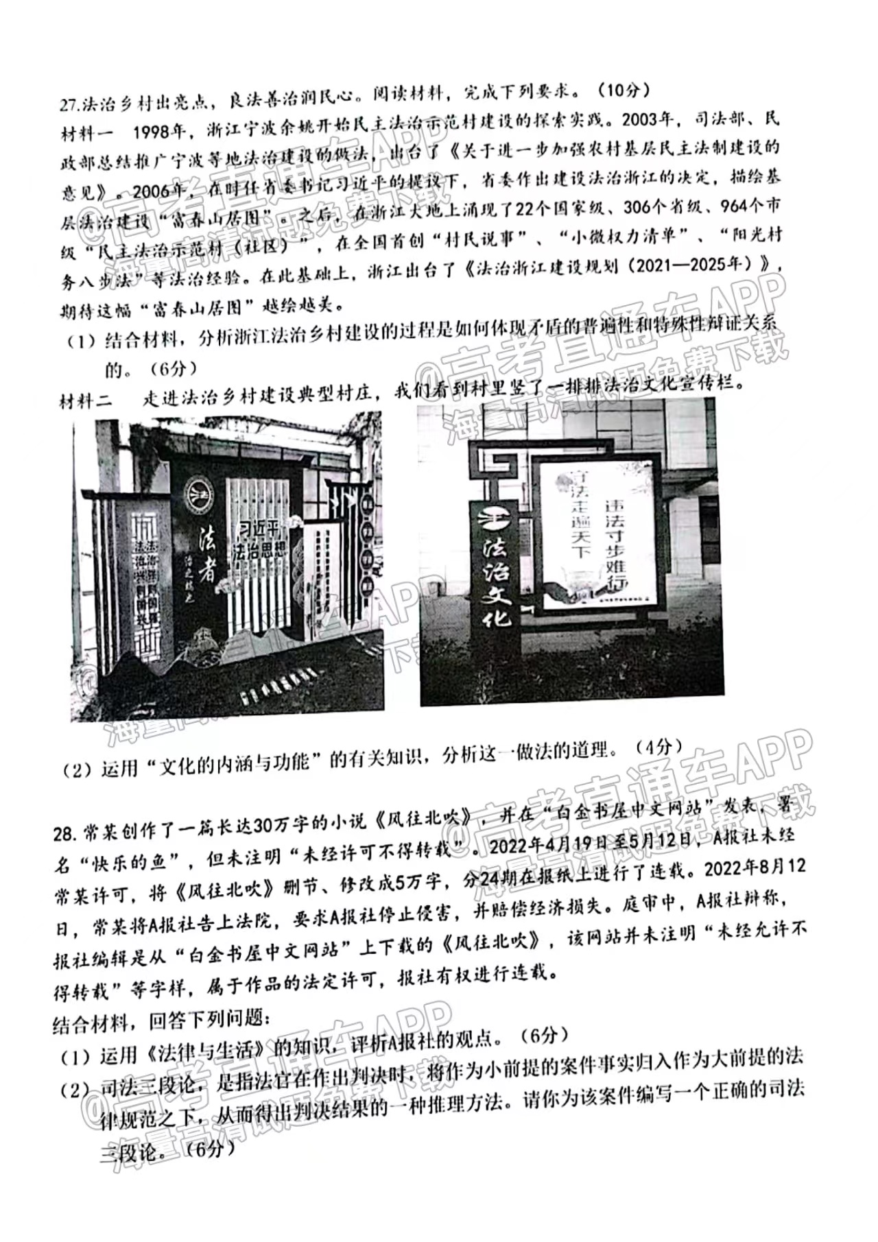 2023届浙江台州一模在2022年11月16日进行,很多同学都非常想知道2023浙江台州一模政治试卷及答案解析,待2023浙江台州一模考完了政治,小编将第一时间为大家带来最新的2023浙江台州一模政治试卷及答案详解,供大家参考。