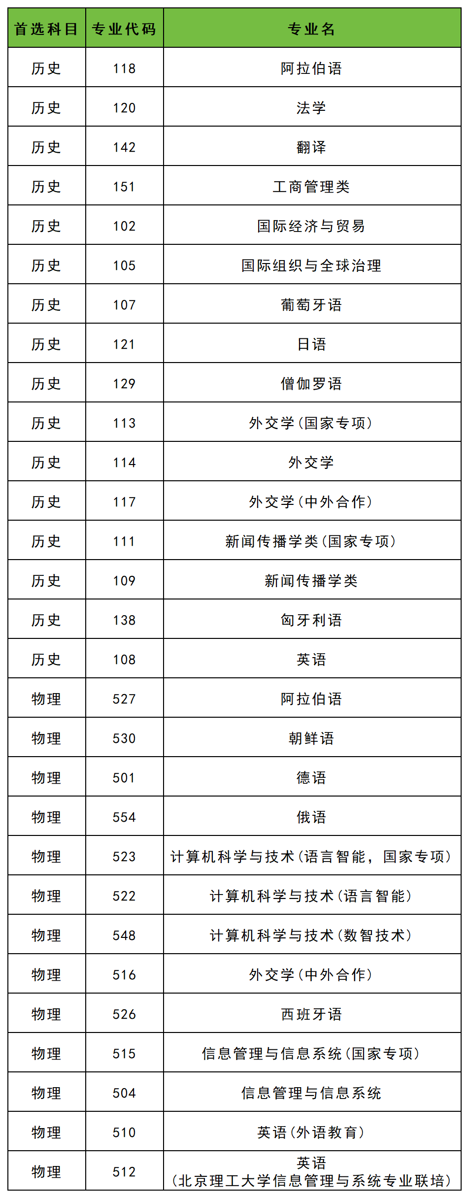 篇幅有限,这里仅列举北京外国语大学的本科志愿填报专业代码,以供参考(同一专业可能存在多个代码的情况,请按照实际招生要求选择填报):