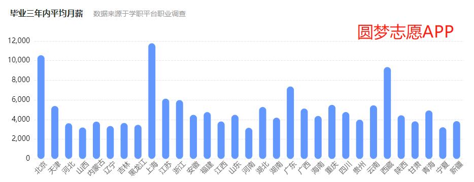 历史学专业毕业生平均月薪最高的地区为北京、上海、西藏,最高在10000元以上,最低的地区为河南、山西、宁夏,最低在2000元以上。(数据来源于学职平台职业调查)