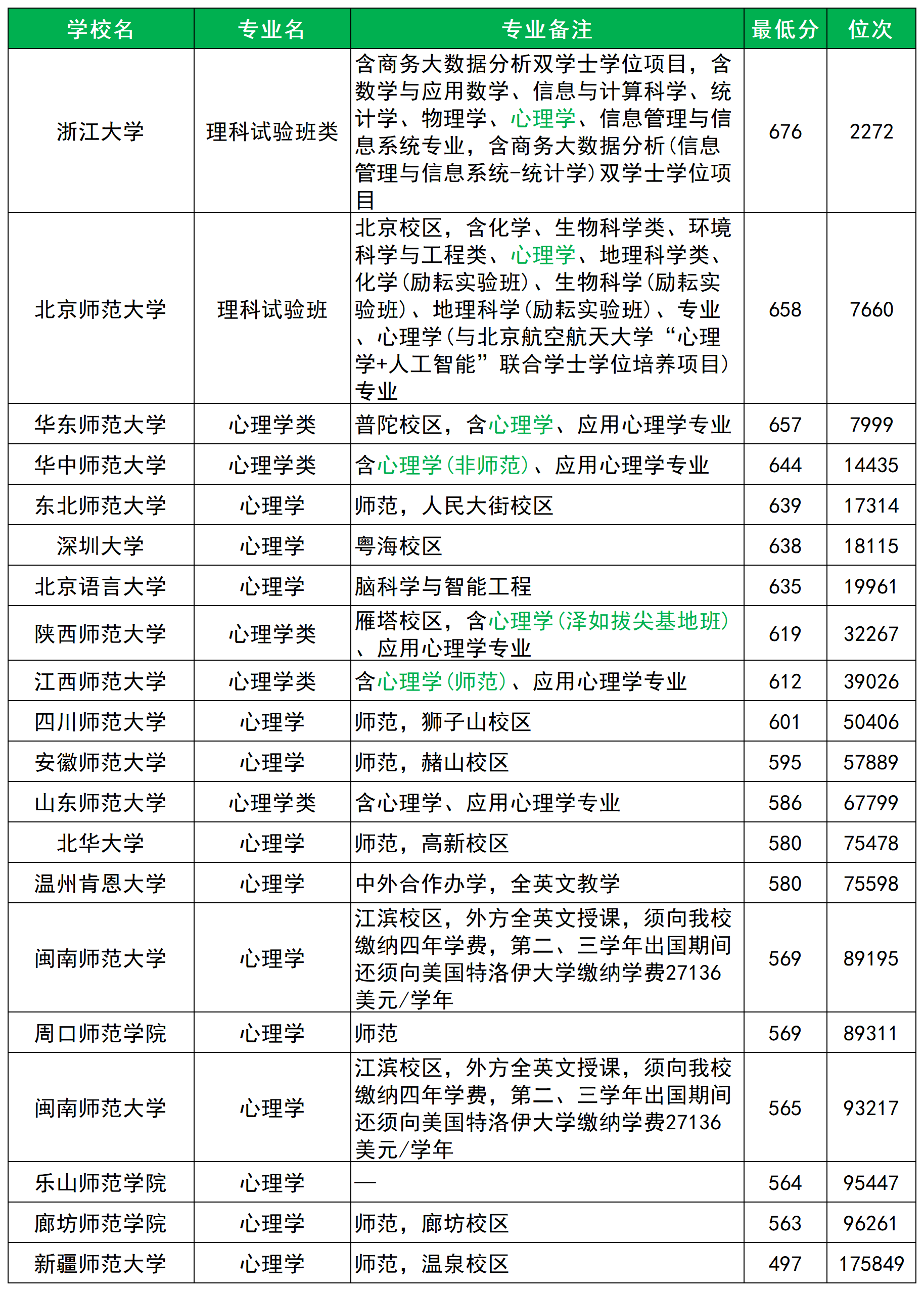 二、全国心理学专业大学最低录取分数线