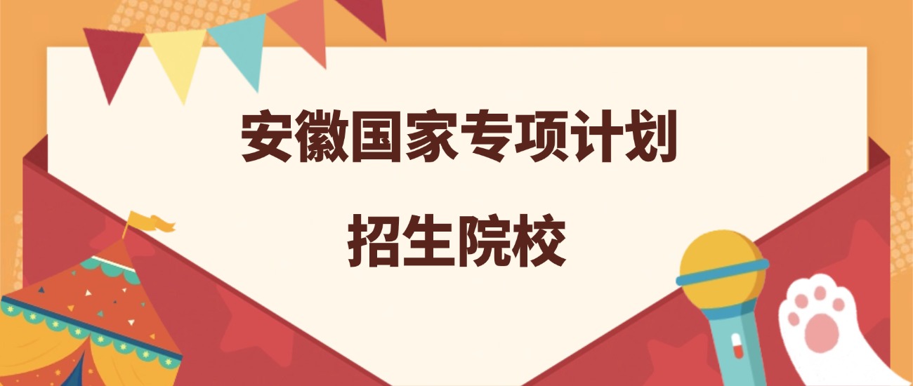 安徽省最好的国家专项计划大学分别为中国科学技术大学、合肥工业大学、安徽大学、安徽师范大学、安徽医科大学。