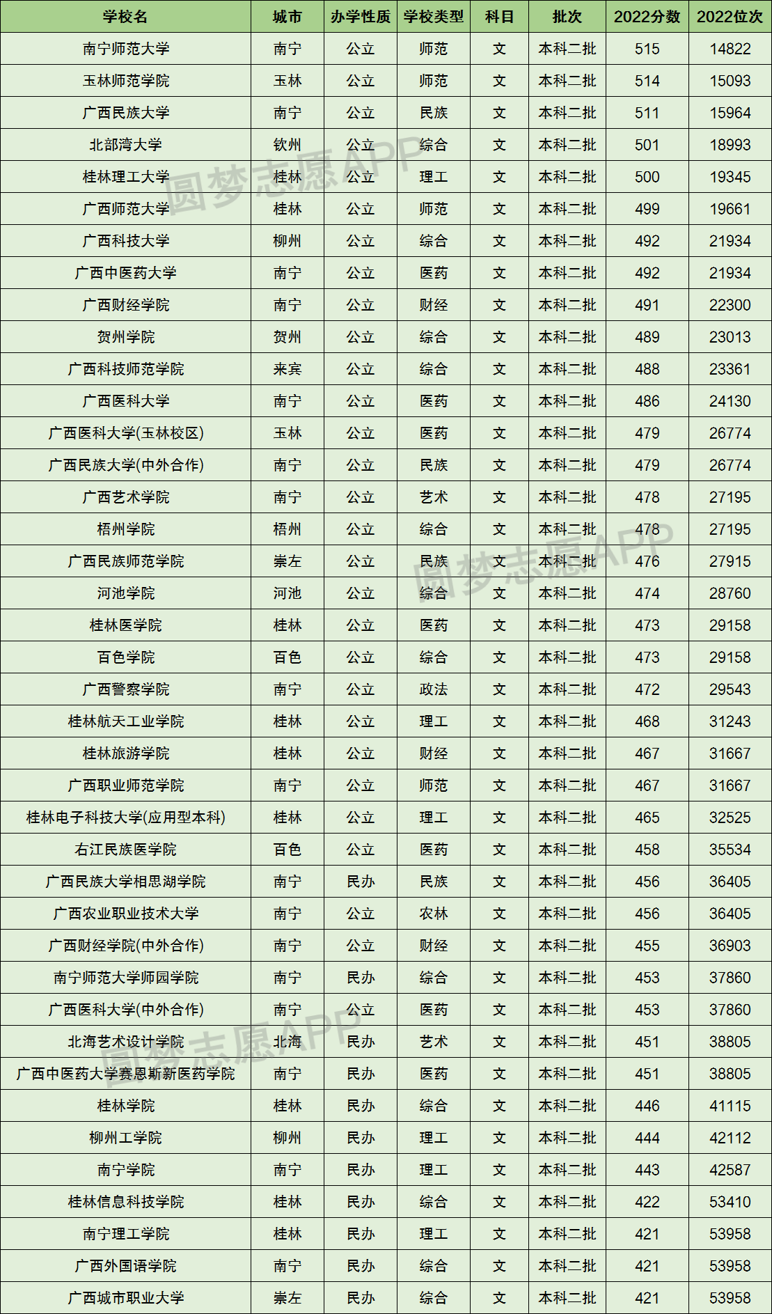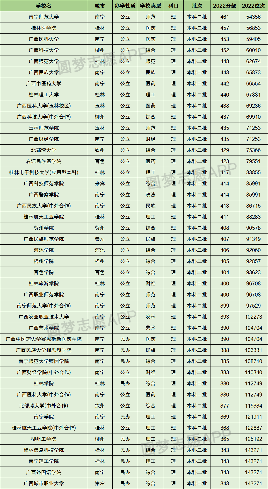 广西壮族自治区内公办大学相较于大部分民办大学,其办学实力、学费等条件都要更好一些。以下为高校100网小编整理的2022年广西所有二本大学分数线,以供各位同学家长参考。