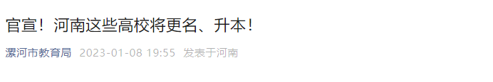 全国两会后,河南多地政府报告提出将加快推动2023年郑州职业技术、郑州旅游职业学院、河南护理职业学院、安阳幼儿师范高等专科学校、安阳职业技术学院升格为本科大学,加快焦作大学和焦作师范高等专科学校合并升本。