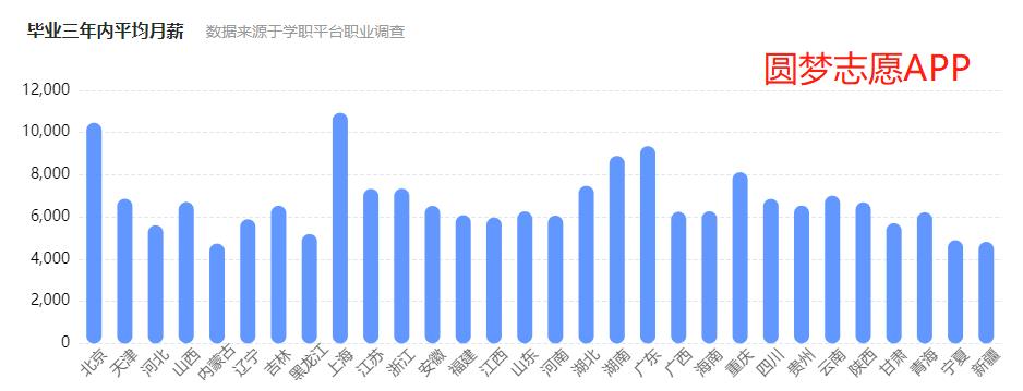测绘专业毕业生平均月薪最高的地区为北京、上海、广东,最高在10000元以上,最低的地区为内蒙古、宁夏、新疆,最低在4000元以上。(数据来源于学职平台职业调查)