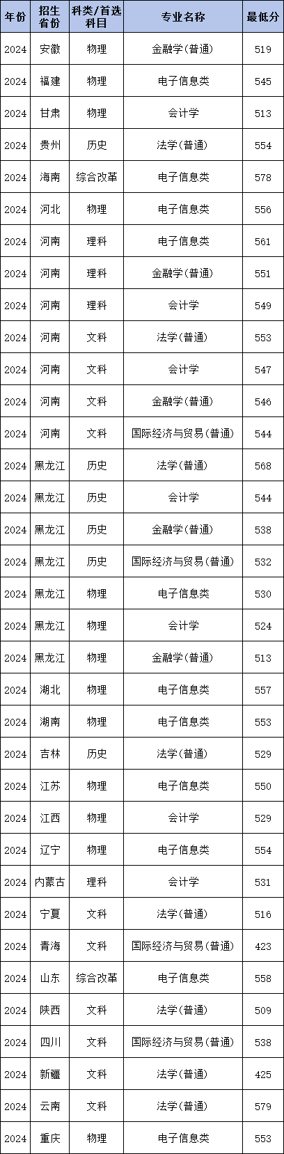 | 文科 | 国际经济与贸易(普通) | 544 |