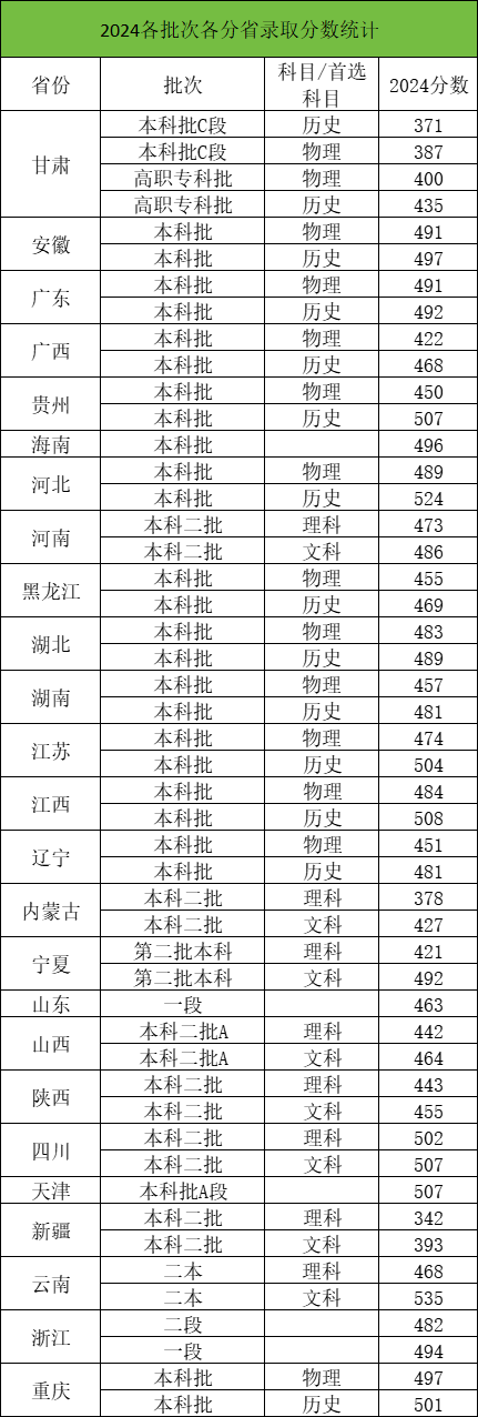 2024年天水师范学院本科批招生,各省最低录取分数线如下: