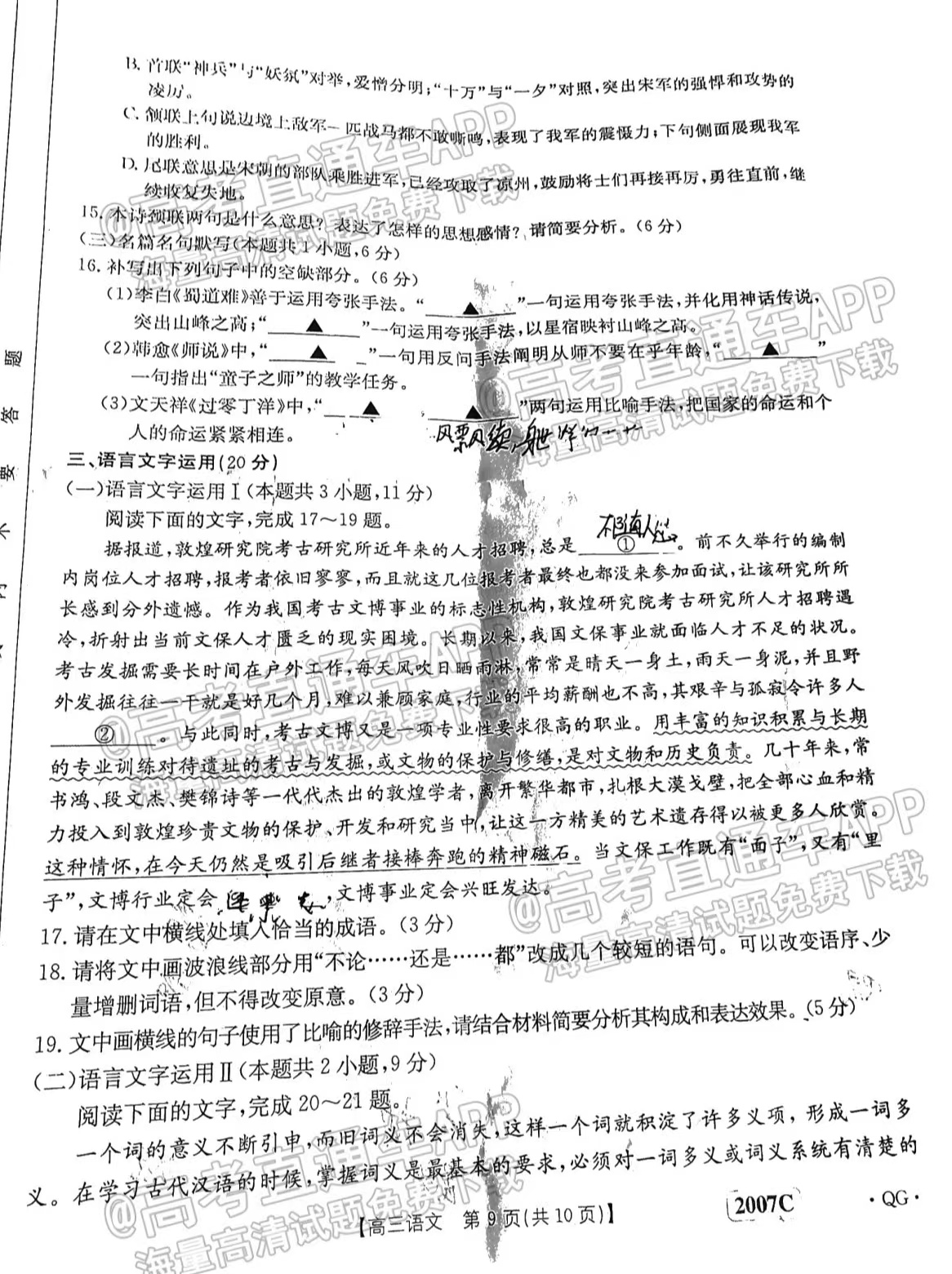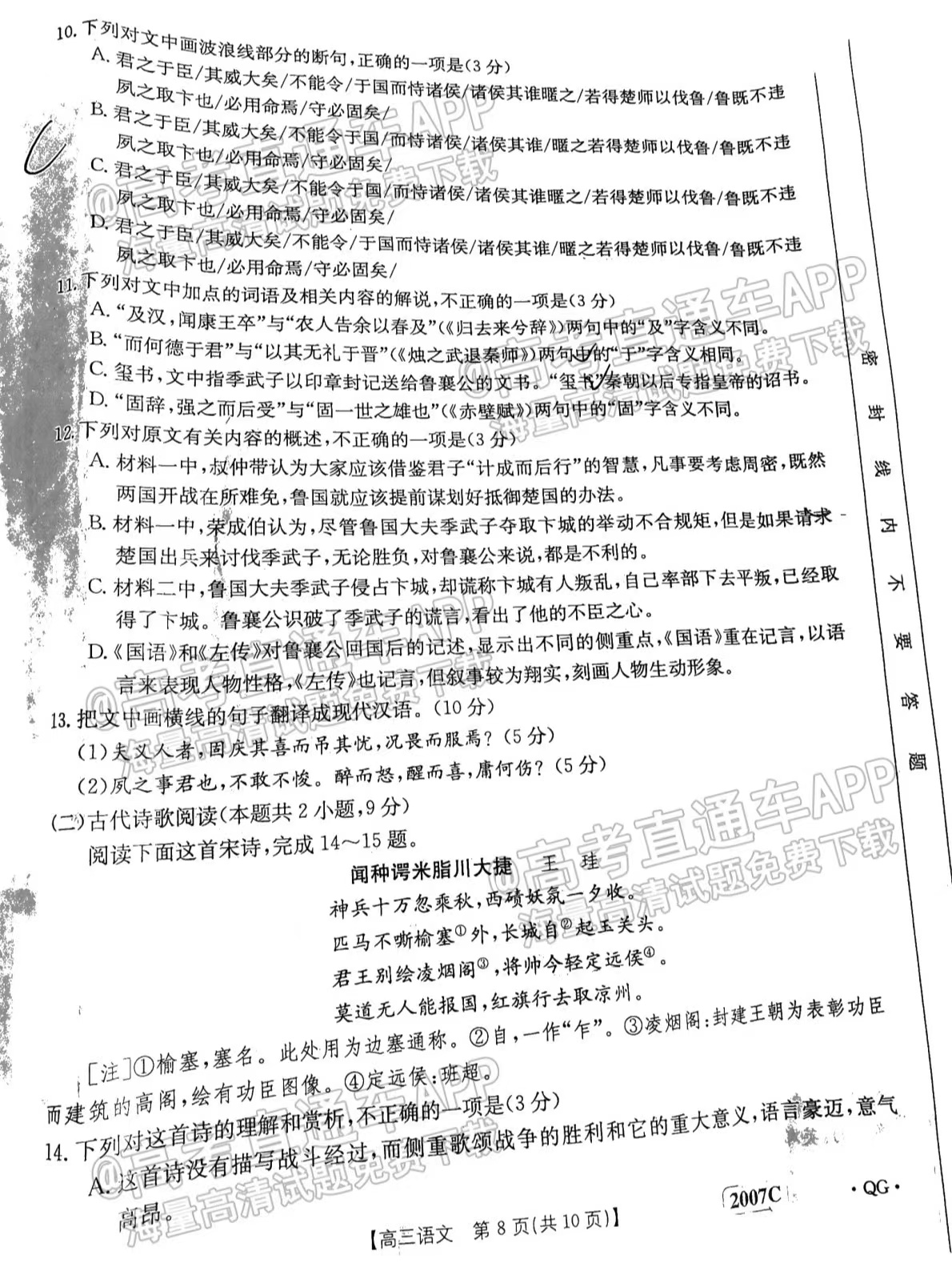 2023江西高三11月(金太阳)大联考于11月24日开考,在此次考试中,包含的科目一共有四门,这四门科目分别是语文、数学(文/理)、英语、文综/理综。以下是语文的试卷及答案详解,详情如下: