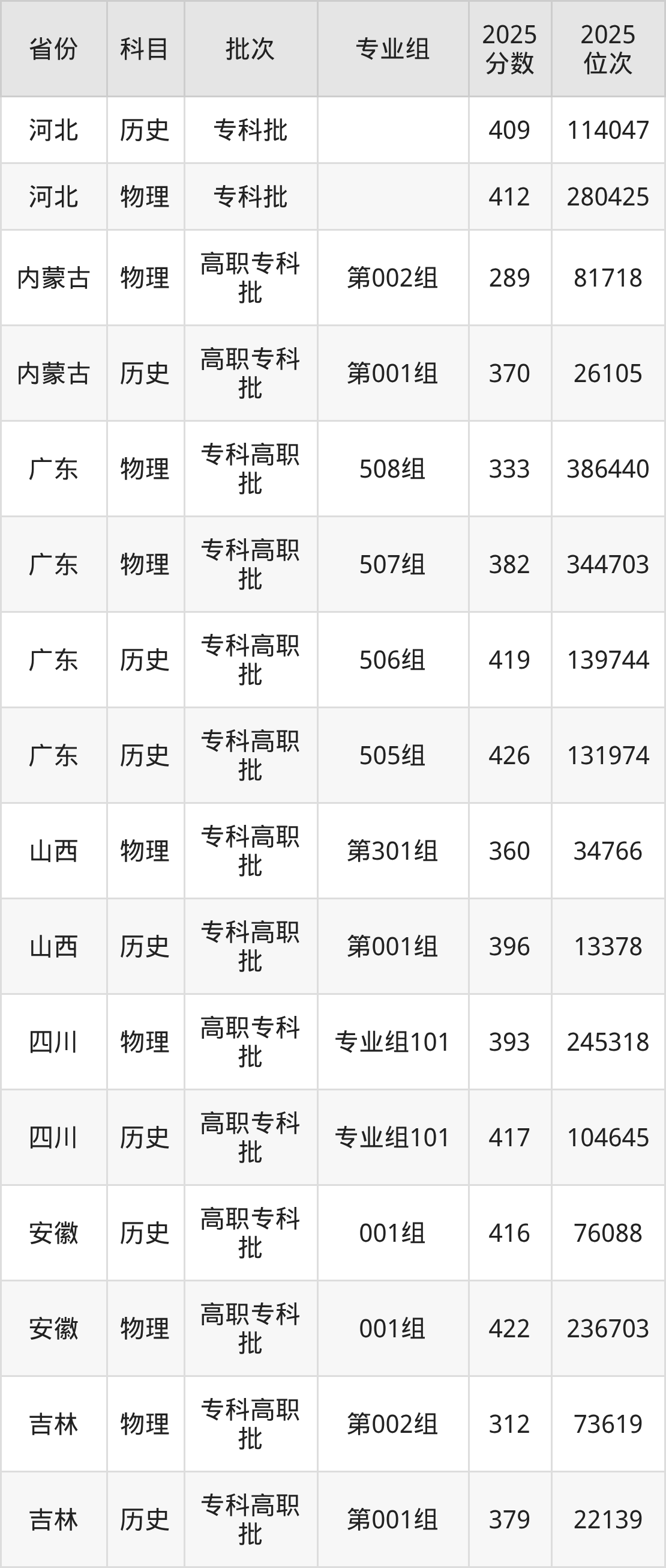 江西交通职业技术学院001专业组:2025年投档录取最低分为369分,录取最低位次为35005名。