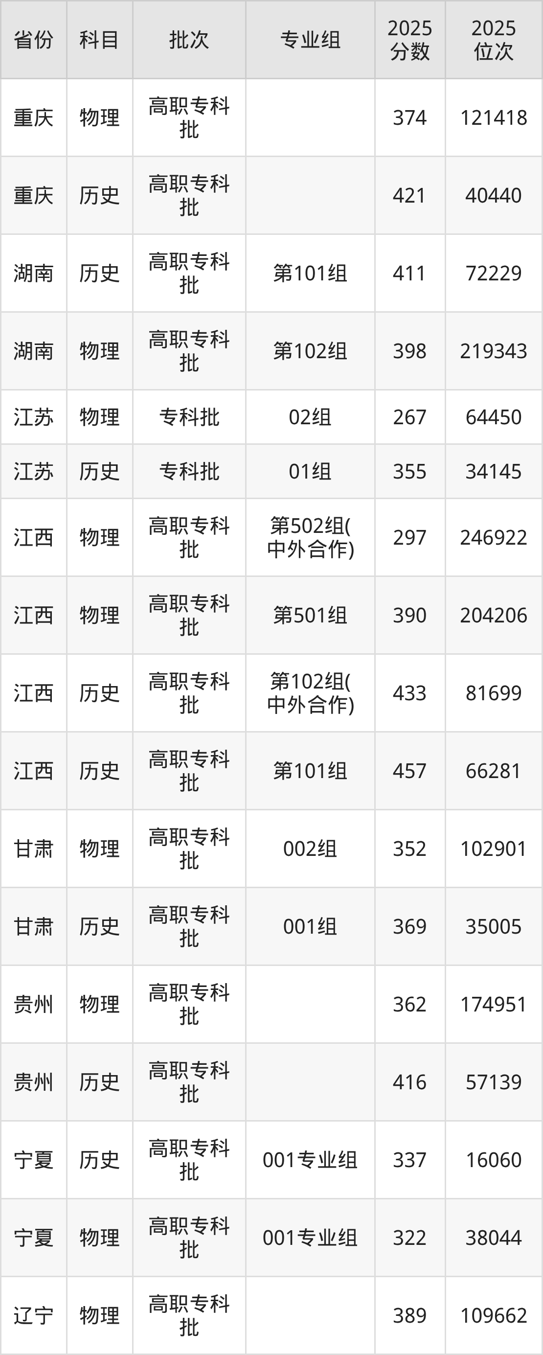 下面是2025年江西交通职业技术学院全国录取分数线一览表,请查阅。