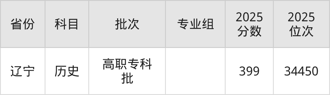2025年投档录取最低分为399分,录取最低位次为34450名。