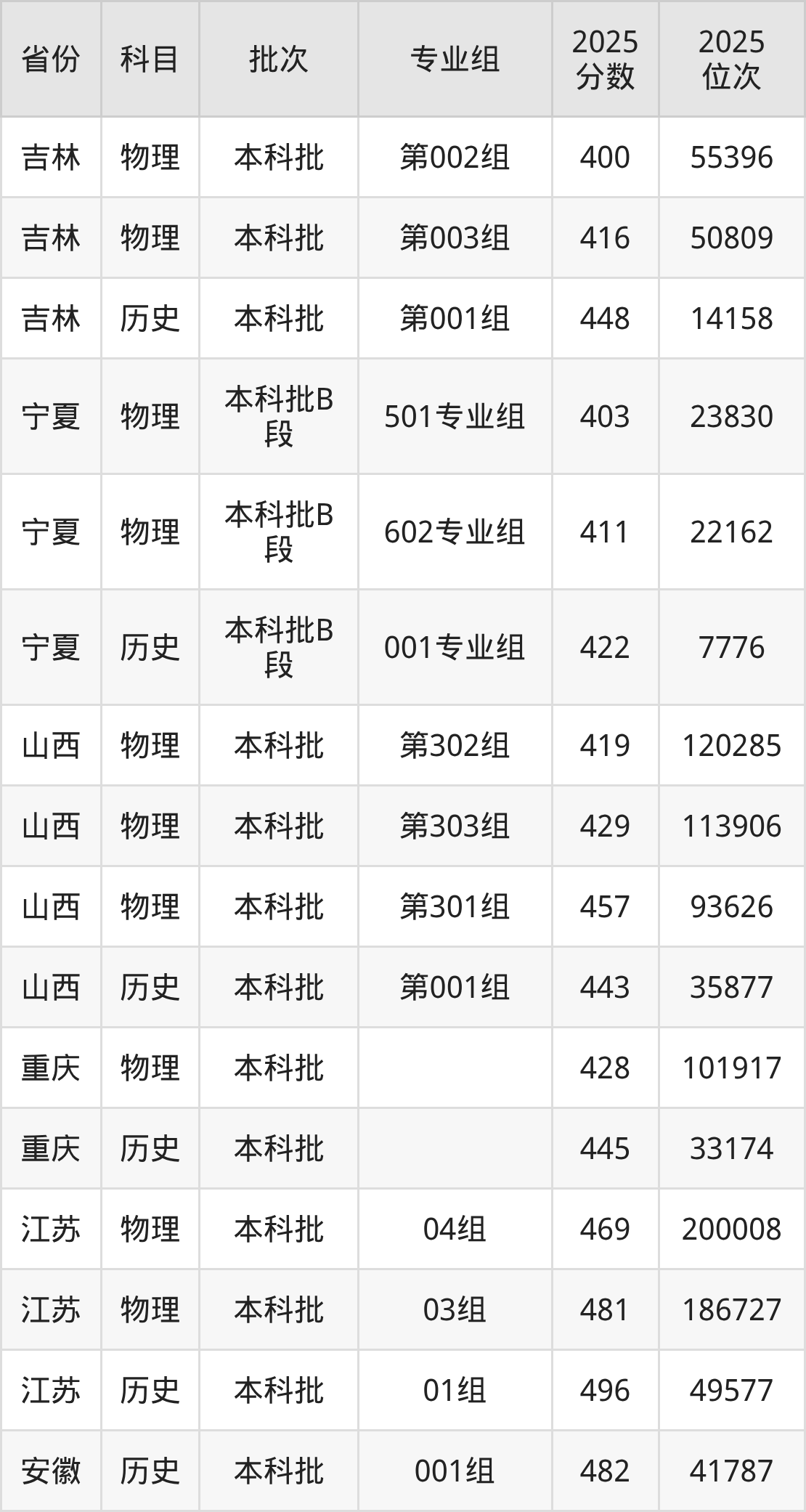 2025年投档录取最低分为445分,录取最低位次为33174名。