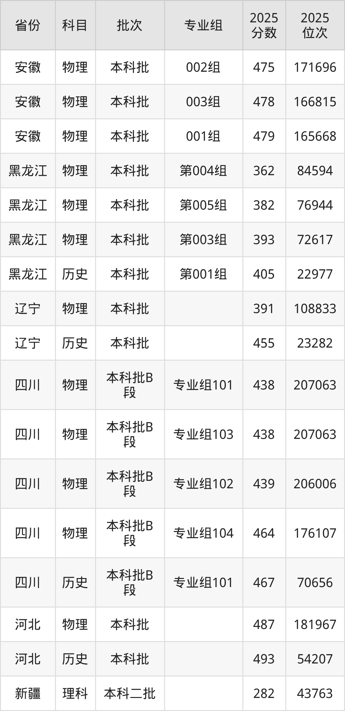 2025年投档录取最低分为282分,录取最低位次为43763名。