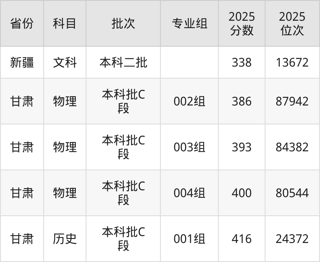 2025年投档录取最低分为338分,录取最低位次为13672名。