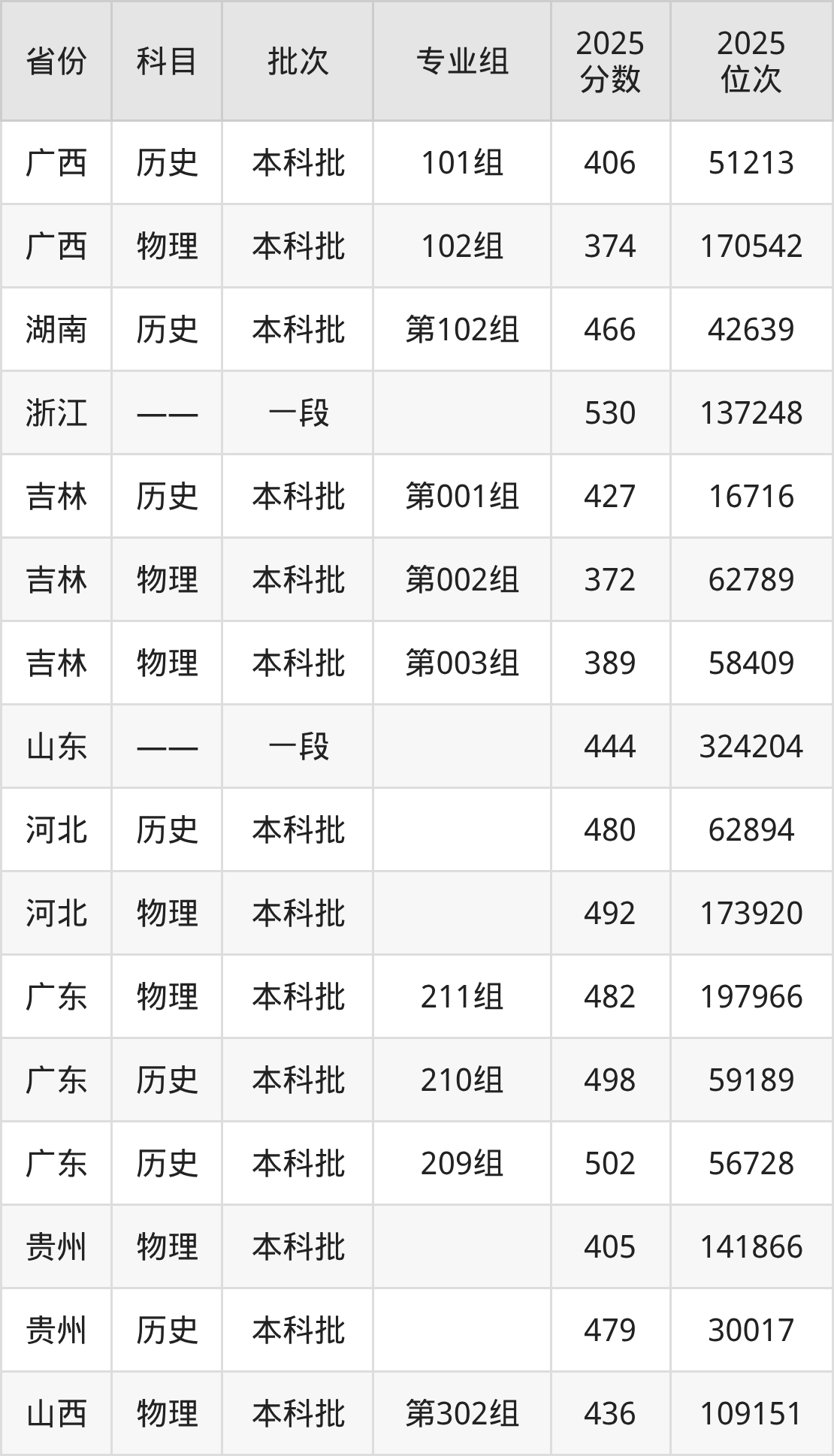 2025年投档录取最低分为492分,录取最低位次为173920名。