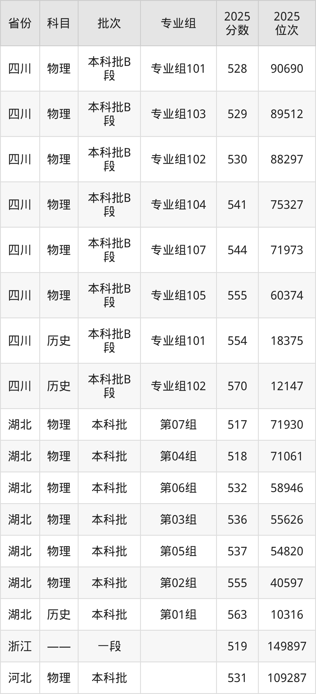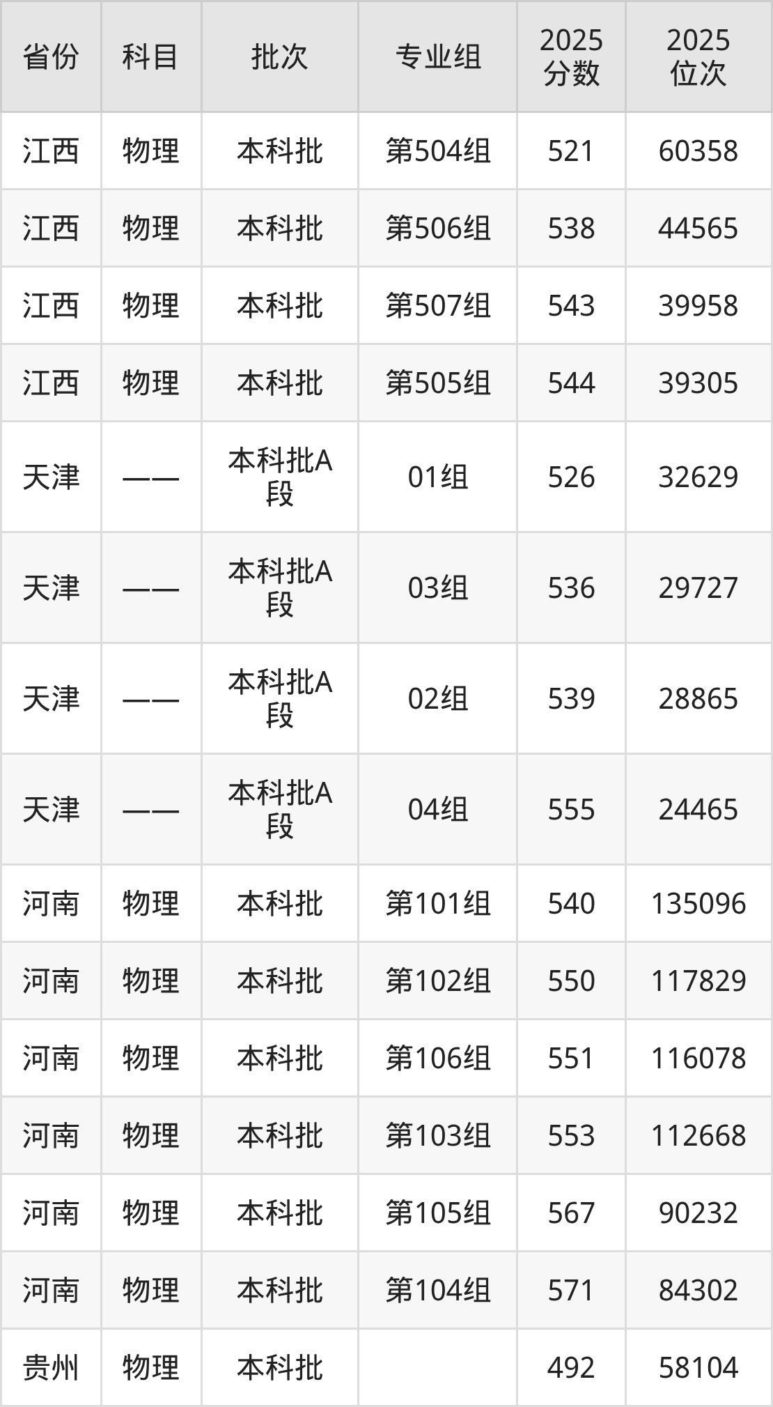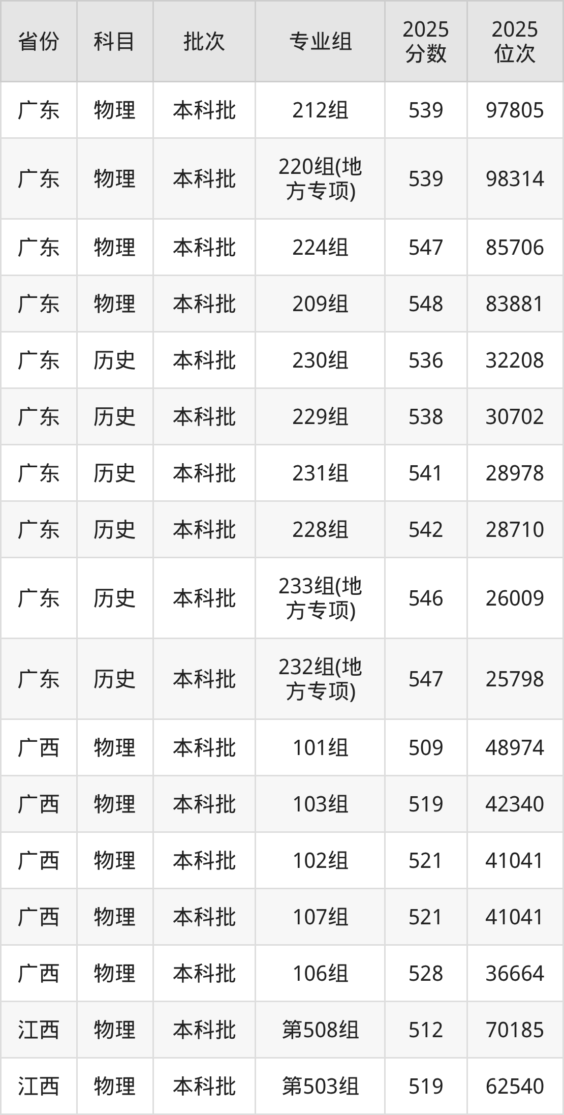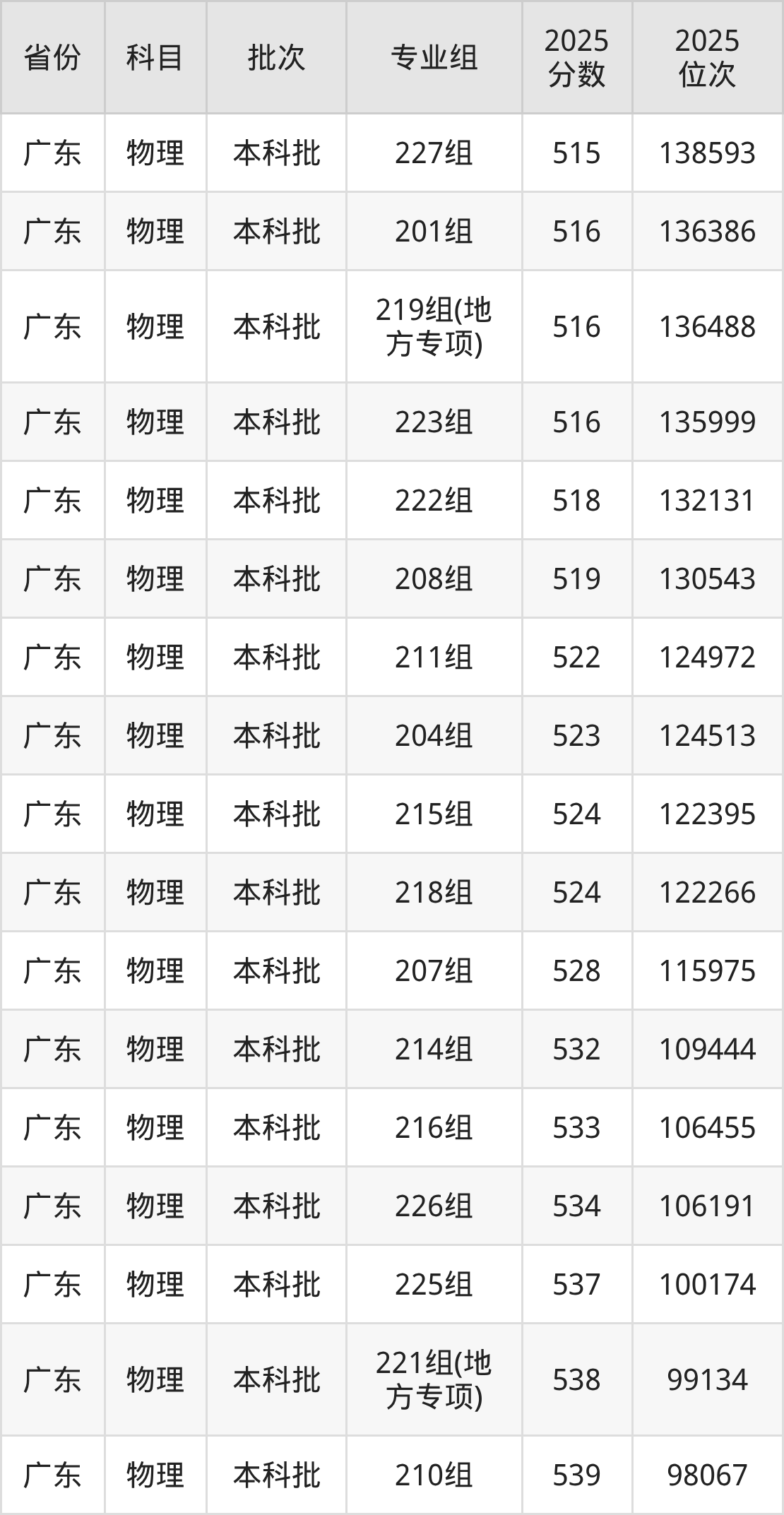 2025年在本科物理类进行招生,各专业组分数线详情如下: