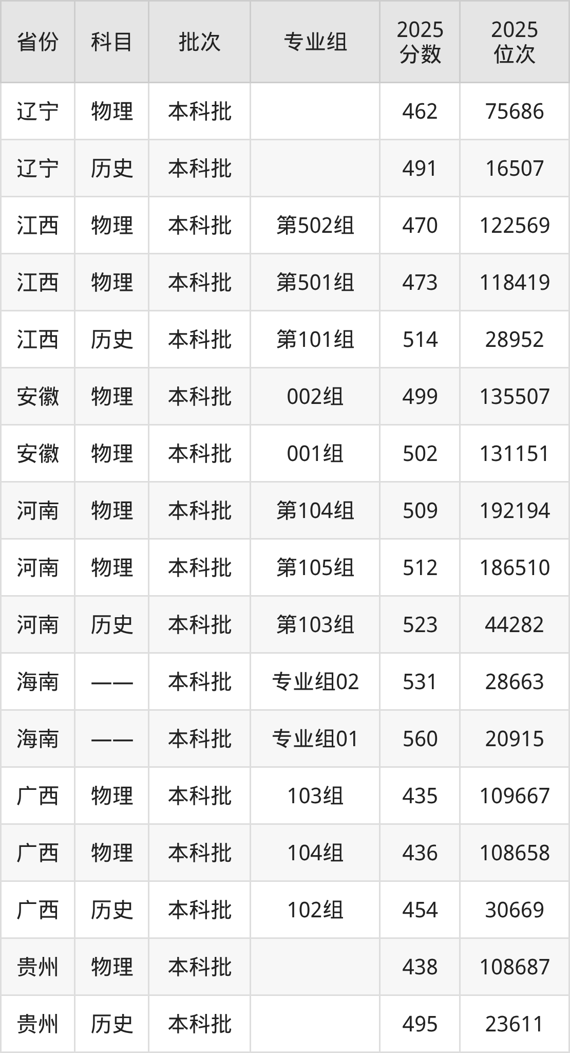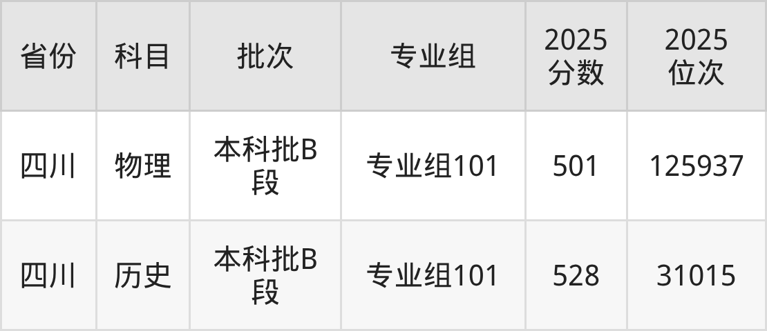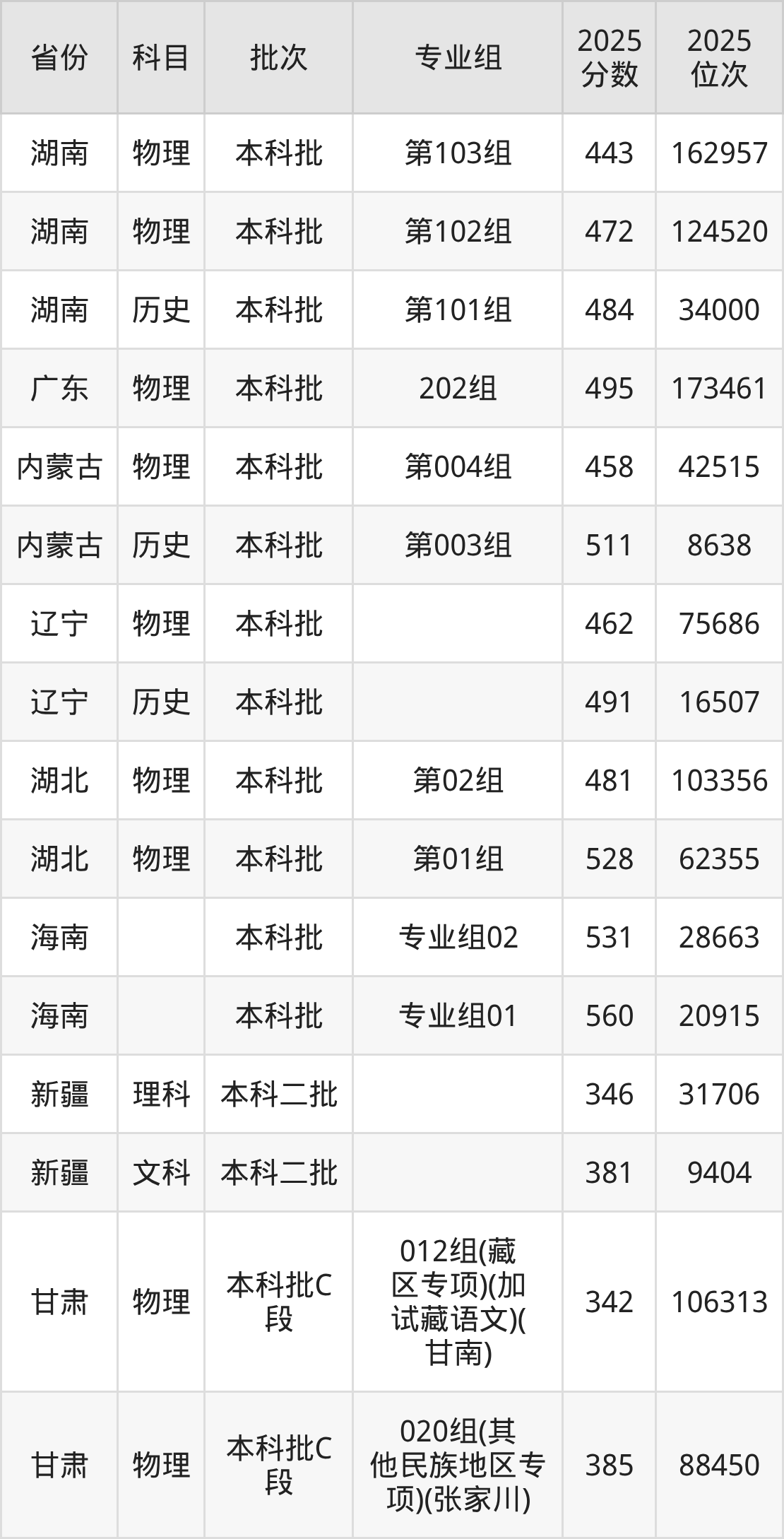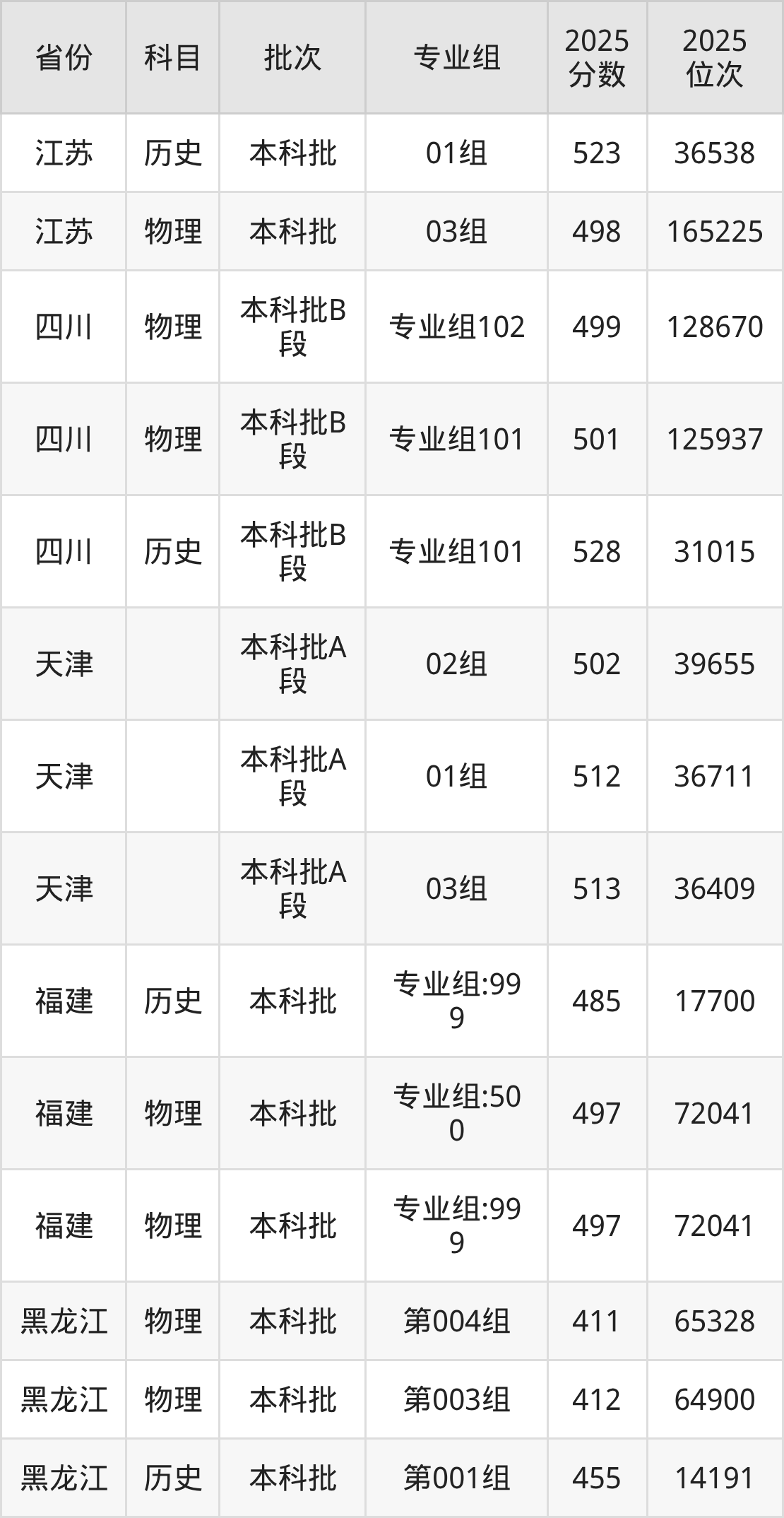 2025年在本科物理类进行招生,各专业组分数线详情如下:
