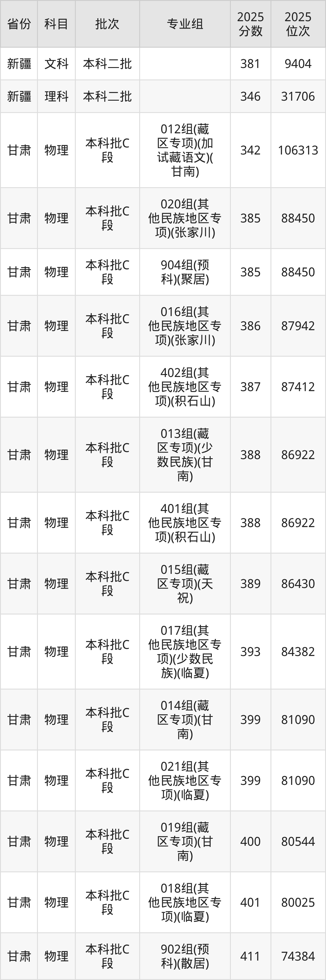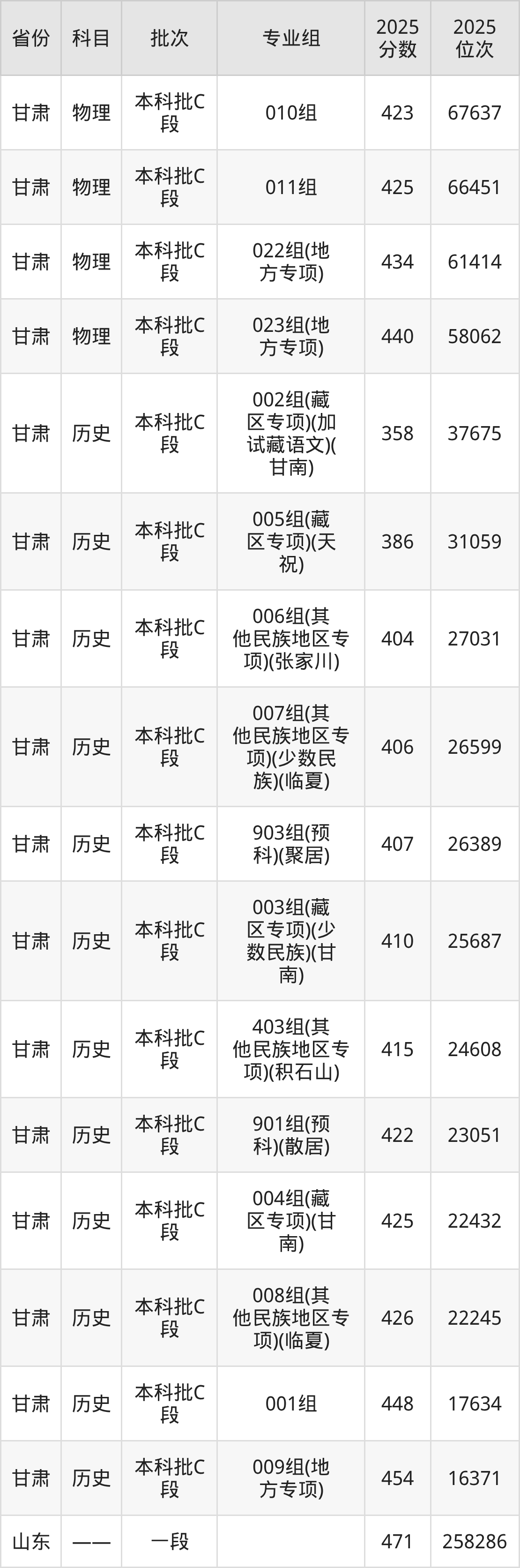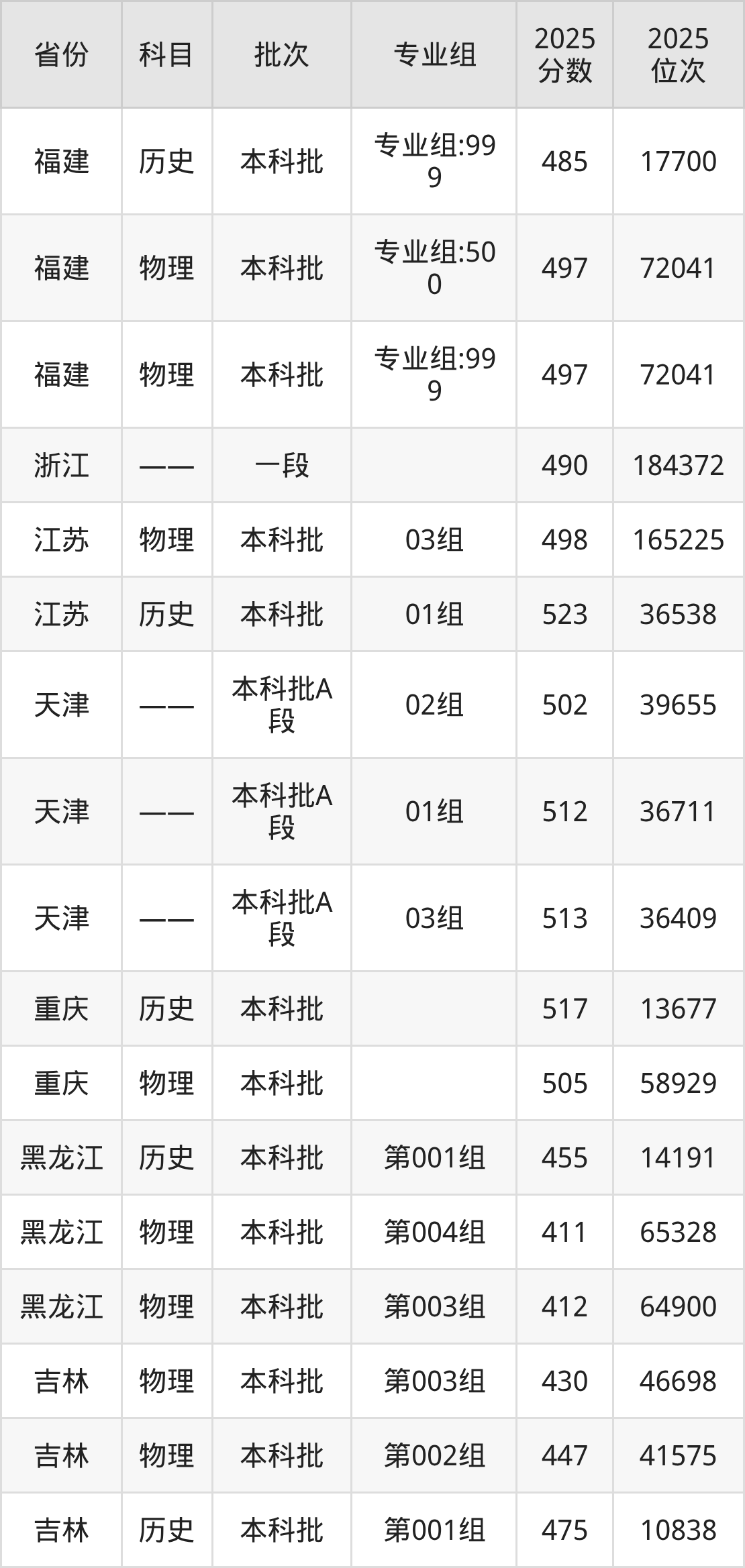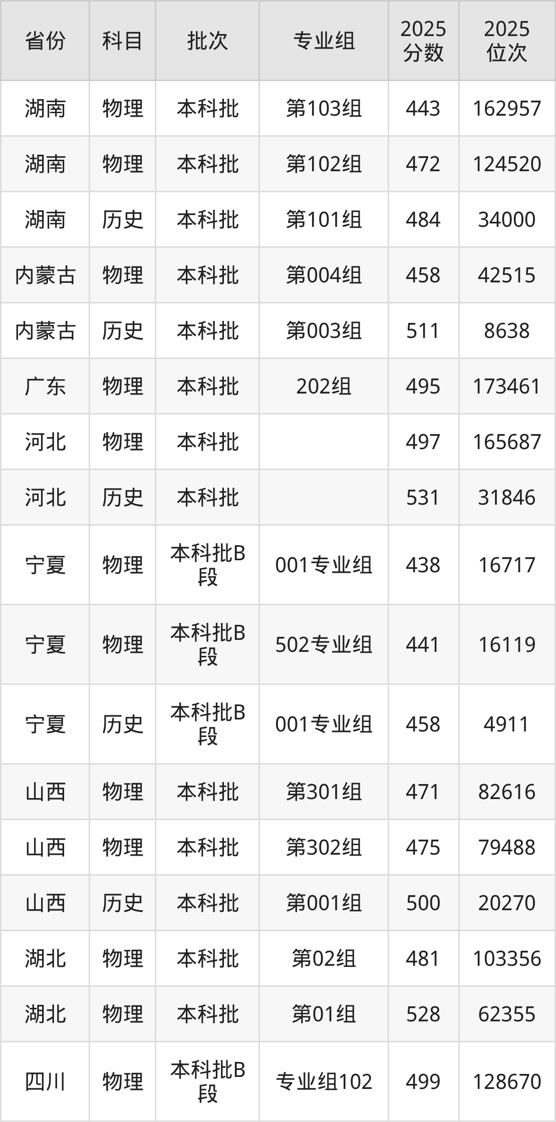 2025年在本科物理类进行招生,各专业组分数线详情如下:
