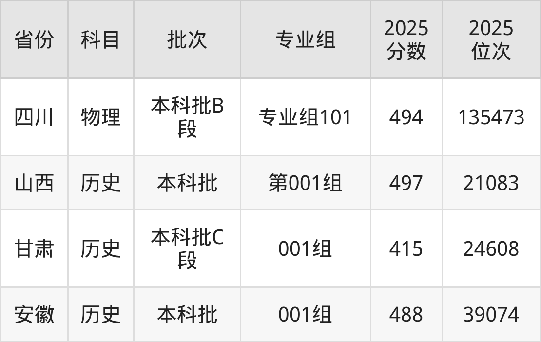 2025年在本科历史类进行招生,各专业组分数线详情如下: