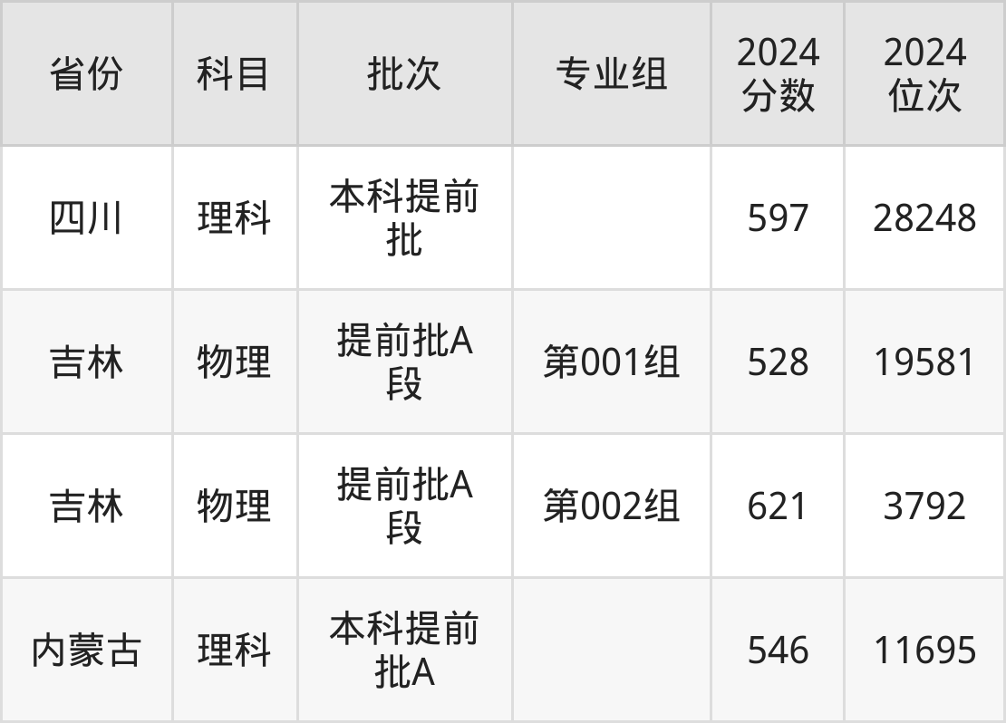 2024年在本科物理类进行招生,各专业组分数线详情如下: