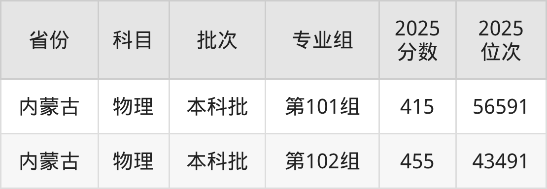 2025年在本科物理类进行招生,各专业组分数线详情如下: