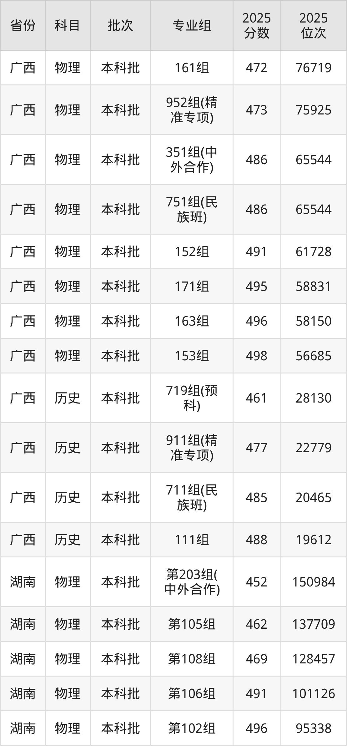 广西科技大学952组(精准专项):2025年投档录取最低分为473分,录取最低位次为75925名。