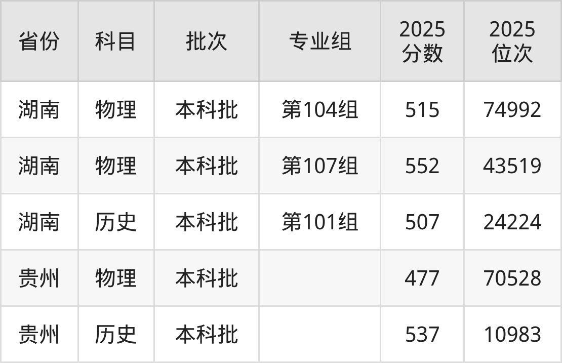 2025年投档录取最低分为537分,录取最低位次为10983名。
