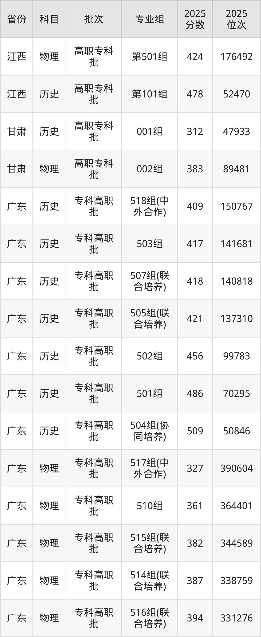 下面是2025年广东交通职业技术学院全国录取分数线一览表,请查阅。